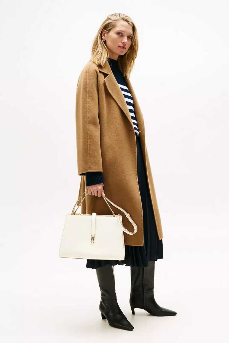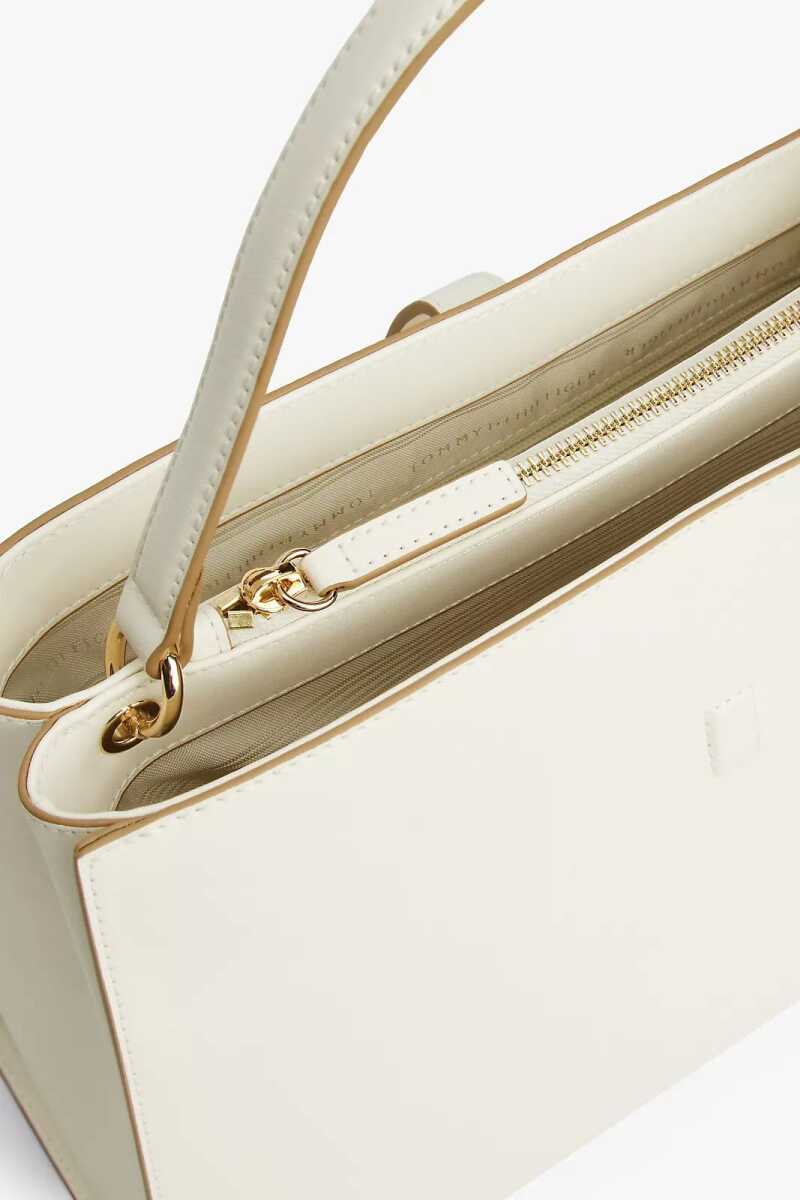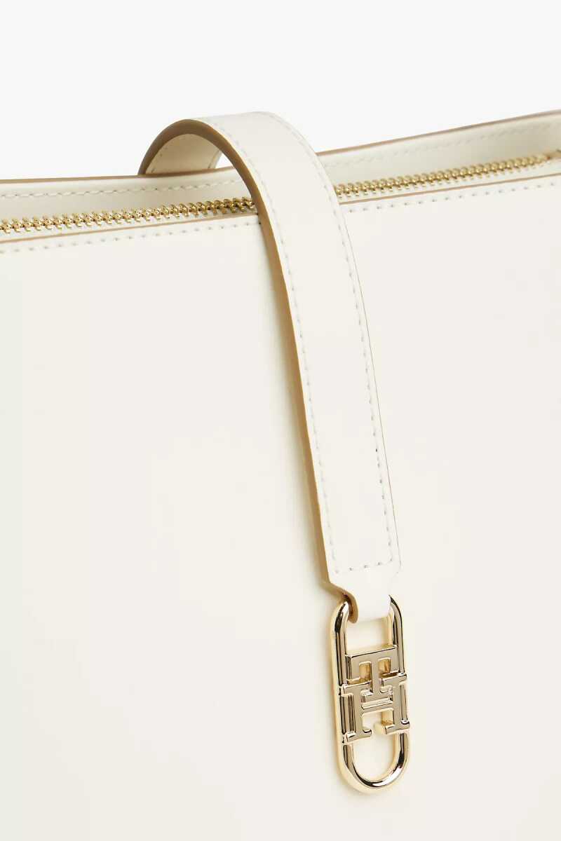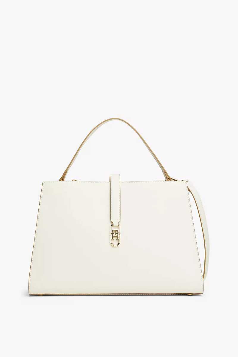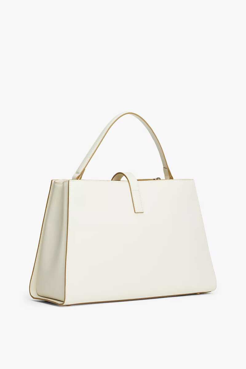 Hem profesyonel hem de günlük kıyafetlerinize zarafet katmak için tasarlanmış bu çanta, zamansız ve sofistike bir stil sunar. Pürüzsüz poliüretan malzemeden üretilen yapısal silüeti, şık kırık beyaz rengiyle öne çıkar. Çantanın ön kapağında yer alan parlak metal kilit detayı, tasarıma rafine bir odak noktası ekler. Zarif el taşıma askısı ve çıkarılabilir uzun omuz askısı sayesinde çok yönlü bir kullanım sunan bu model, hem şık hem de pratik bir seçimdir.