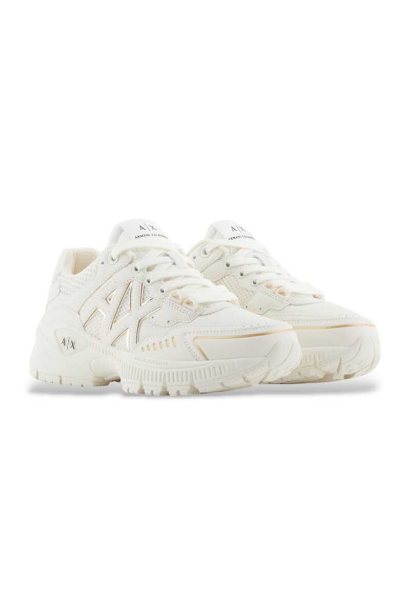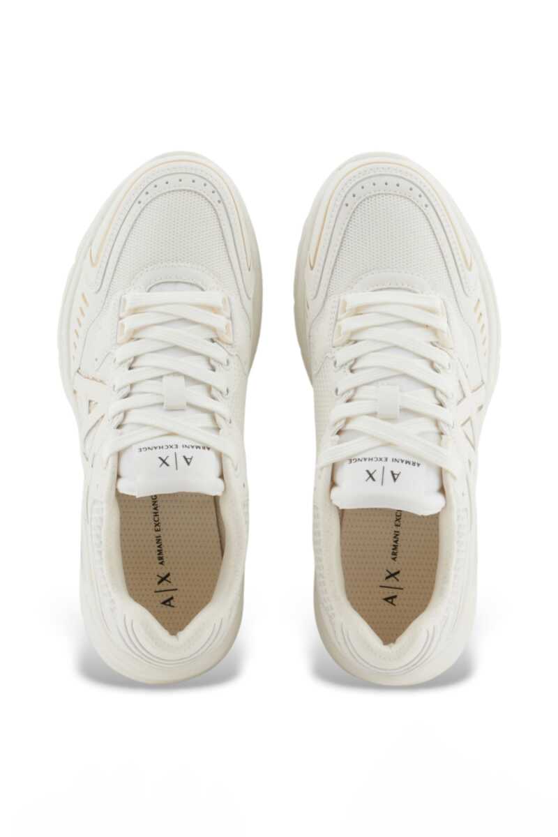 Modern ve dinamik bir tasarıma sahip olan bu sneaker, sokak modasının enerjisini adımlarınıza taşıyor. File ve sentetik panellerin birleşiminden oluşan üst yüzeyi, yanlardaki büyük amblemi süsleyen zarif metalik detaylarla dikkat çekici bir stil sunar. Konfor ve trendleri bir araya getiren kalın tabanı gün boyu rahatlık sağlarken, monokrom krem rengi her kombine sofistike bir dokunuş katıyor.