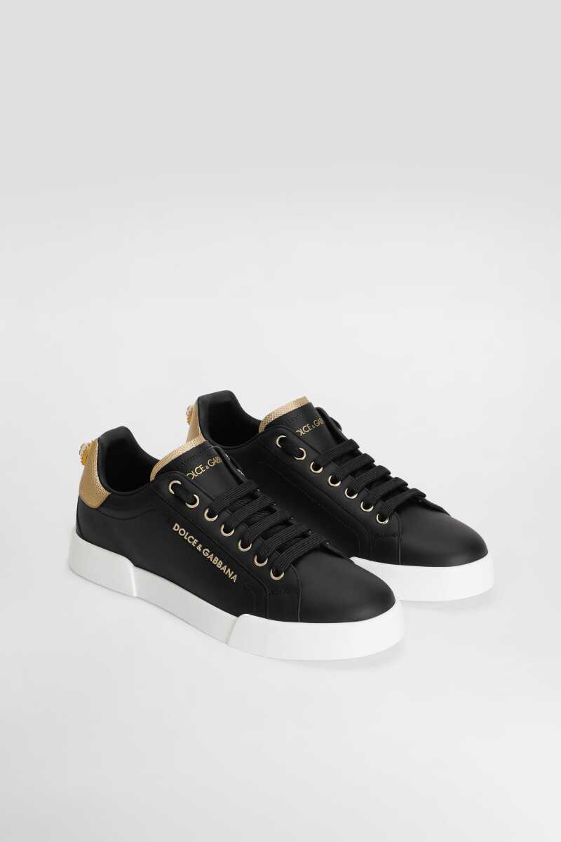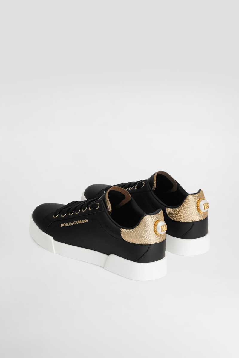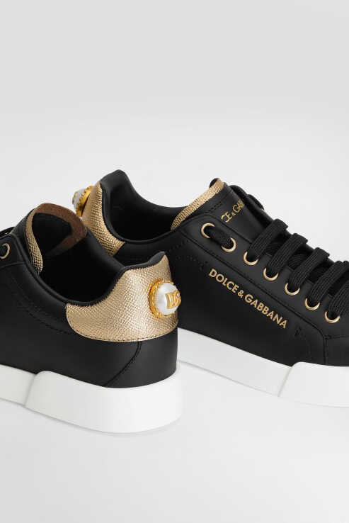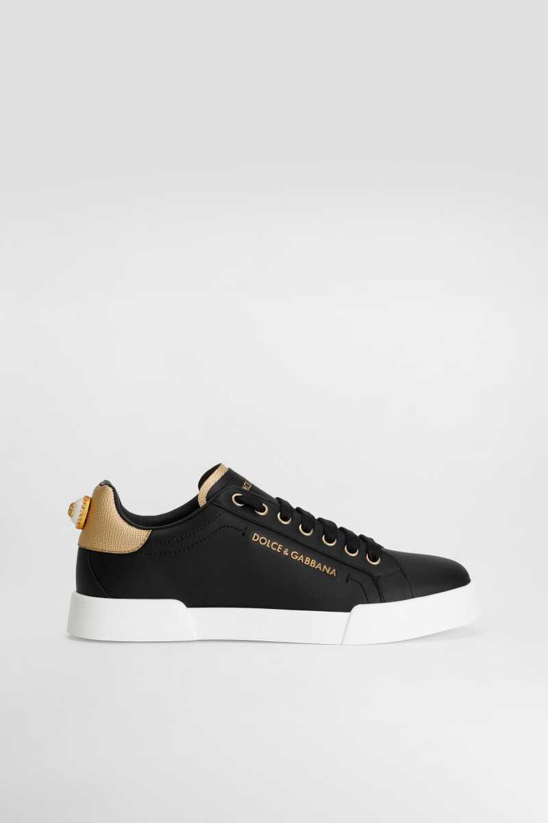 Lüks İtalyan işçiliğini ve göz alıcı kontrastları bir araya getiren bu sneakers, stilinize zarif bir ışıltı katıyor. Üstün kaliteli dana derisinden üretilen pürüzsüz siyah sayası, kontrast oluşturan beyaz kauçuk taban ile modern bir görünüm sunar. Yan kısımdaki altın rengi yazı detayı ve parlak altın rengi bağcık kapsülleri tasarıma lüks bir dokunuş katar. Tasarımın odak noktası olan kontrast metalik altın rengi dokulu topuk pedi üzerindeki üç boyutlu amblem, ayakkabıya benzersiz bir imza atar.