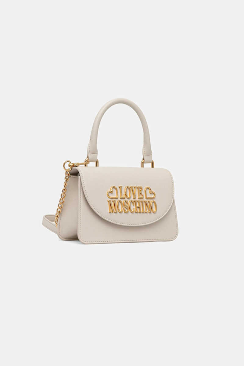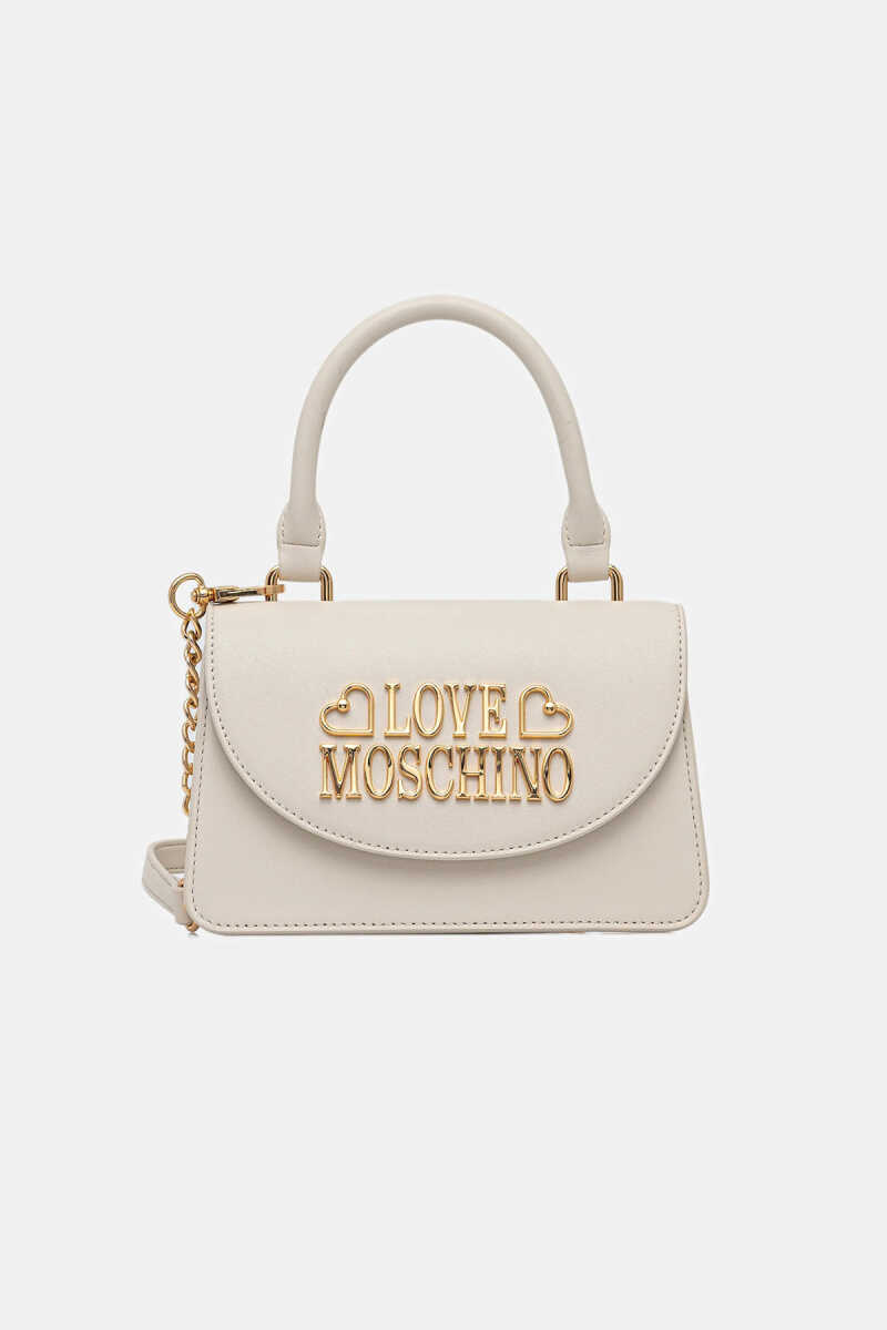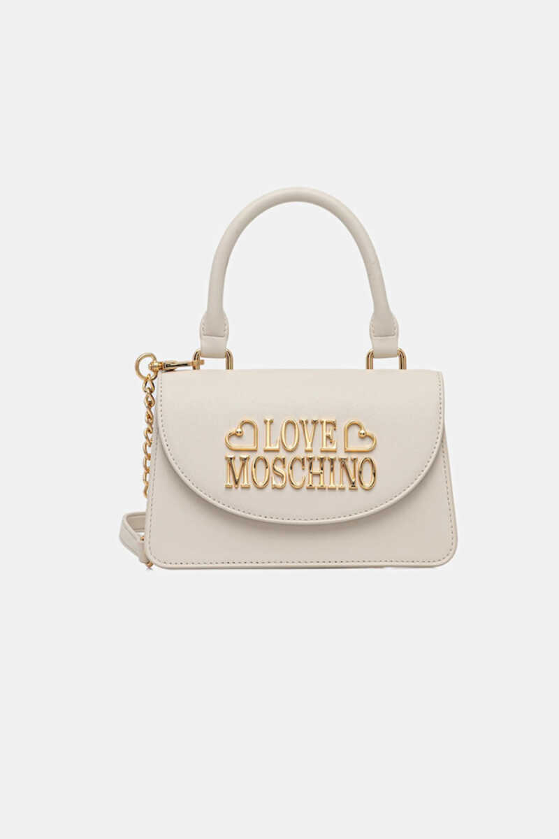 Love Moschino’nun krem renkli mini çantası, ön kapakta yer alan gold metal LOVE MOSCHINO logosu ile dikkat çeker. Üst kısmındaki kısa sap sayesinde elde taşınabilir bir kullanım sağlar. Yan tarafında gold zincir bağlantısı bulunan model, kompakt boyutuyla günlük kullanıma uygundur.