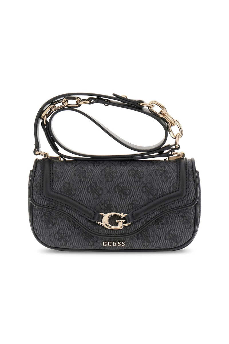 Modern ve şık "baget" formundaki bu omuz çantası, şehirli ve sofistike bir stil sunar. Tonal monogram desenli antrasit rengi gövdesi, kapağı çevreleyen düz siyah biye ile zarif bir uyum sergiler. Ön kapak üzerinde yer alan parlak metal harf logosu ve zincir detaylı omuz askısı, tasarıma modern bir dokunuş katar.