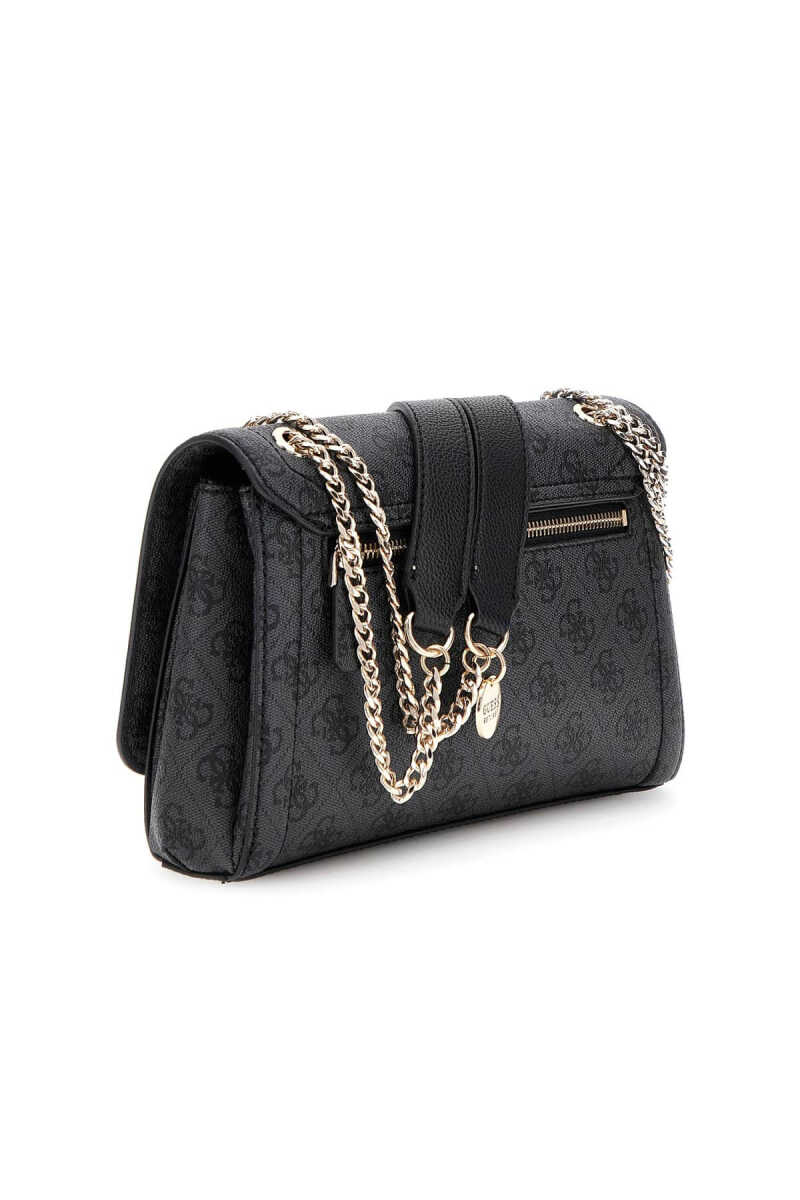 Klasik ve modern detayları bir araya getiren bu omuz çantası, tüm yüzeyini kaplayan tonal monogram deseniyle dikkat çeker. Çoklu bölmeli iç tasarımı ve arka yüzeyindeki fermuarlı cebi, eşyalarınızı düzenli bir şekilde organize etmeniz için fonksiyonel bir yapı sunar. Parlak zincir detaylı omuz askısı ve ön kapak üzerindeki üçgen formlu metal aksesuar, çantanın antrasit rengiyle şık bir uyum yakalar.