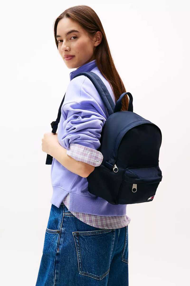 Günlük kullanım için tasarlanmış bu minimalist ve zamansız sırt çantası, her stile kolayca uyum sağlar. Hafif ve dayanıklı polyester malzemeden üretilen çanta, temel eşyalarınız için ideal bir yol arkadaşıdır. Fermuarlı ana bölmesi geniş bir saklama alanı sunarken, ön kısımdaki fermuarlı cep telefon ve anahtar gibi küçük eşyalarınıza hızlı erişim imkanı tanır. Ön cepteki dokuma amblem ve büyük halka fermuar uçları gibi detaylarla stilini tamamlayan çanta, ayarlanabilir askılarıyla konforlu bir kullanım sunar.