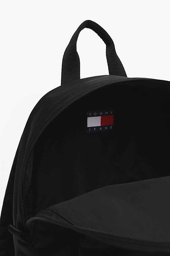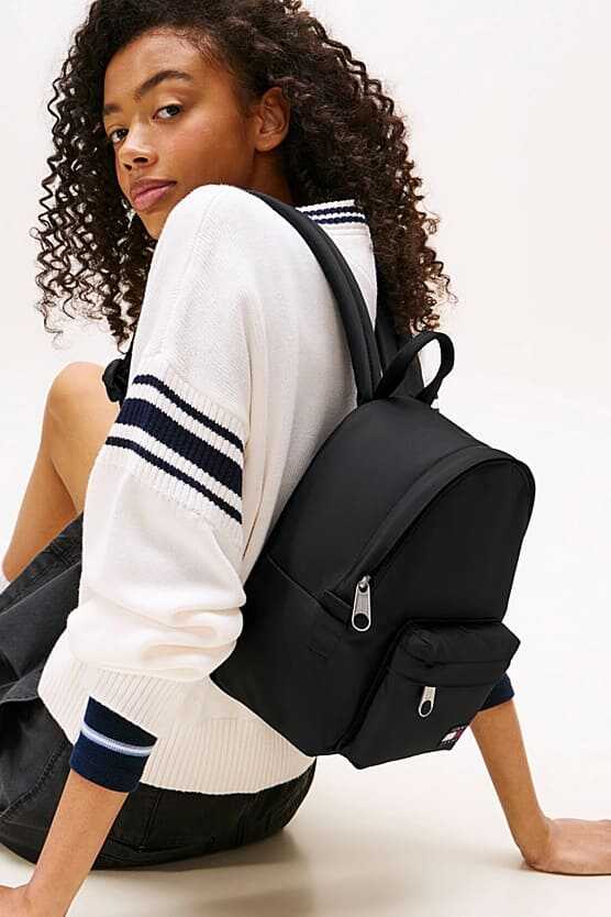 Her gardırobun temel ihtiyacı olan bu sırt çantası, minimalist tasarımı ve pratik fonksiyonelliği bir araya getiriyor. Hafif ve dayanıklı polyester malzemeden üretilen çanta, klasik siyah rengiyle her kombine zahmetsizce uyum sağlar. Fermuarlı ana bölmesi geniş bir saklama alanı sunarken, ön kısımdaki fermuarlı cep temel eşyalarınıza hızlı erişim imkanı tanır. Ön cepteki dokuma amblem ve büyük halka fermuar ucu gibi detaylarla stilini tamamlayan çanta, ayarlanabilir askılarıyla konforlu bir kullanım sunar.