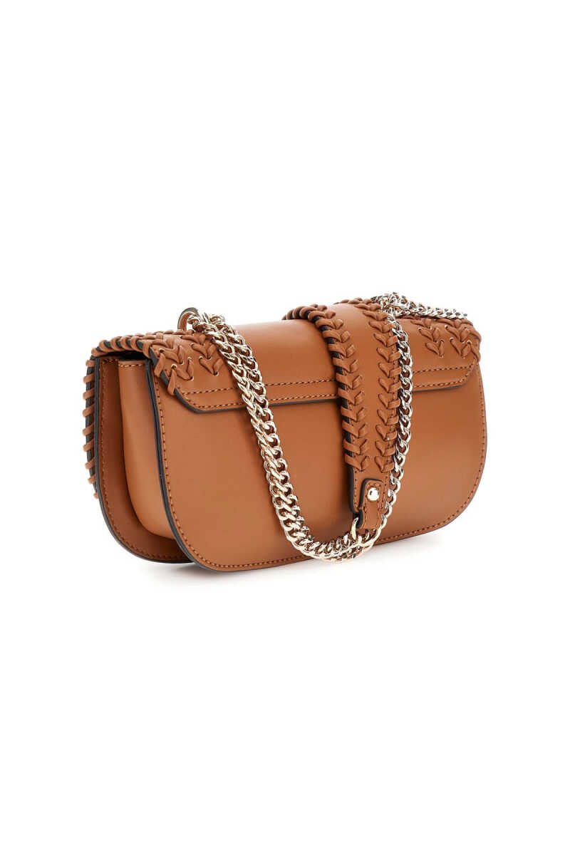 Zanaatkar dokunuşları modern tasarımla birleştiren bu omuz çantası, şıklığıyla öne çıkar. Çantanın kapak kısmını ve askısını süsleyen özel örgü detaylar, tasarıma bohem ve sofistike bir hava katar. Parlak zincir askısı, çantanın sıcak taba rengiyle şık bir kontrast oluşturur. Ön yüzeydeki minimalist metal yazı detayı ise tasarıma son dokunuşu yapar.