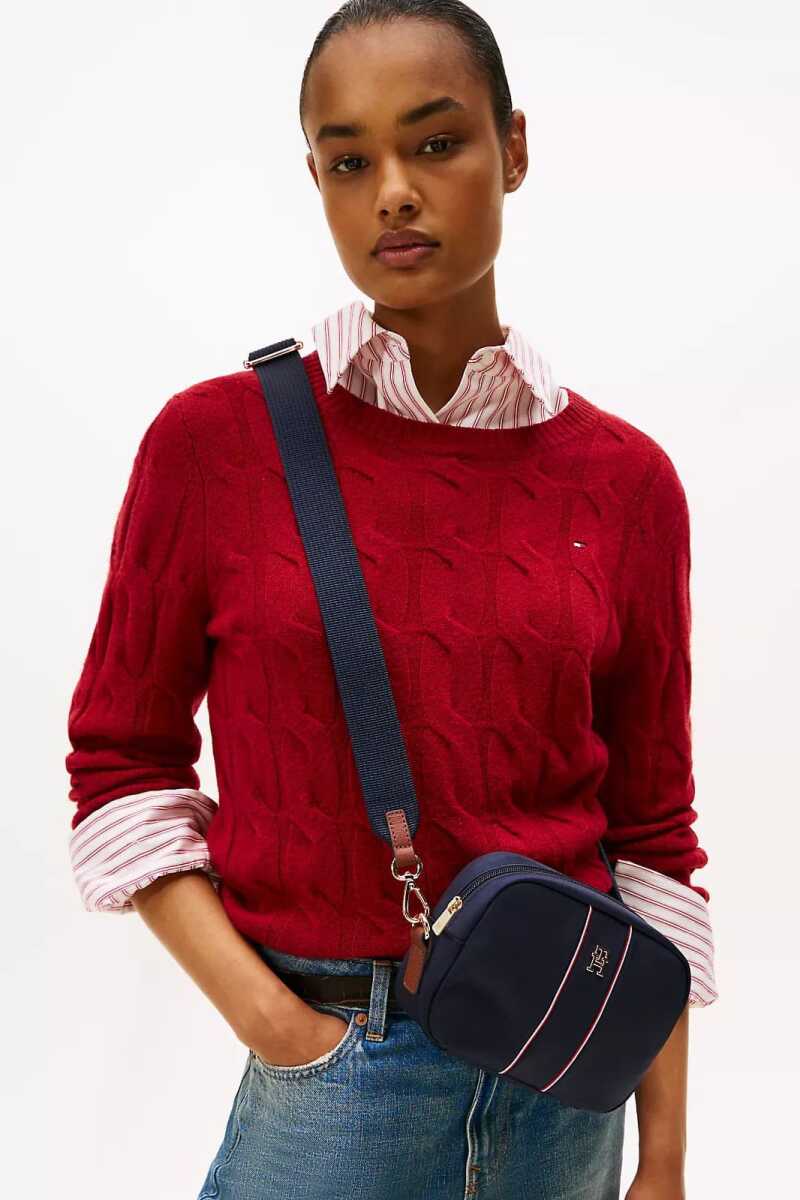 Kompakt ve şık tasarımıyla bu çapraz askılı kamera çantası, günlük stilinize zarif bir dokunuş katacak. Dayanıklı polyester malzemesi, ön yüzündeki ikonik renklerdeki dikey şerit detayı ve zarif metal amblemi ile dikkat çeker. Fermuarlı ana bölmesi, günlük temel eşyalarınız için güvenli bir alan sunar. Ayarlanabilir askısı sayesinde konforlu bir kullanım sunan bu çanta, hem gündüz hem de akşam görünümleriniz için mükemmel bir aksesuardır.