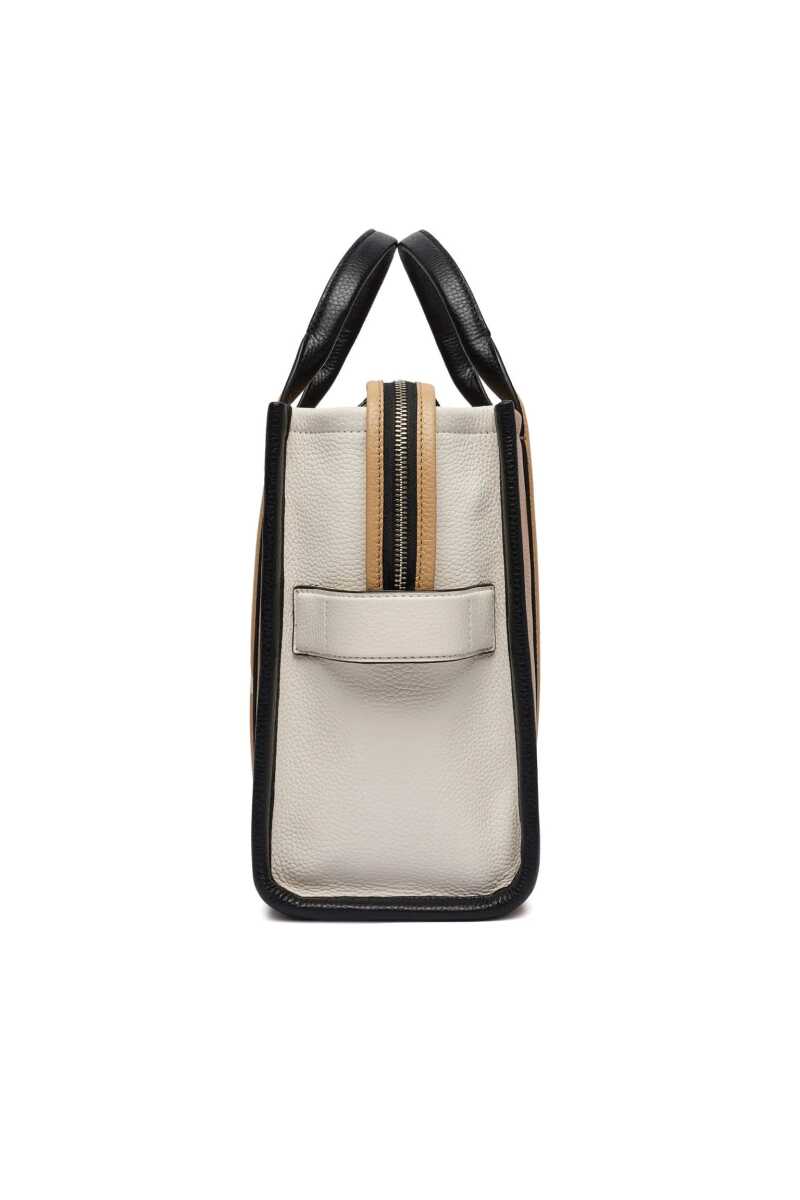 Günlük stilinize modern ve ikonik bir dokunuş katacak bu omuz çantası, renk bloklu tasarımı ve dikkat çekici baskısıyla öne çıkıyor. Camel, siyah ve beyazın sofistike uyumunu sergileyen çanta, dokulu poliüretan malzemesiyle kaliteli bir görünüm sunar. Ön yüzündeki büyük "THE TOTE BAG" baskısı tasarıma cesur bir imza atarken, arka yüzündeki aplike etiket detayı markanın mirasını yansıtır. Fermuarlı ana bölmesi günlük eşyalarınızı güvenle saklamak için idealdir. Hem konforlu çift taşıma sapları hem de ayarlanabilir ve çıkarılabilir uzun askısı sayesinde çok yönlü bir kullanım sunar.