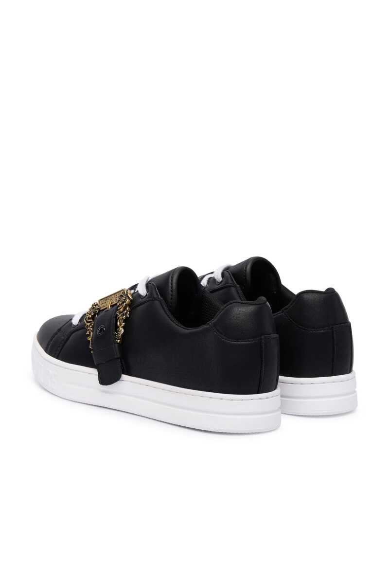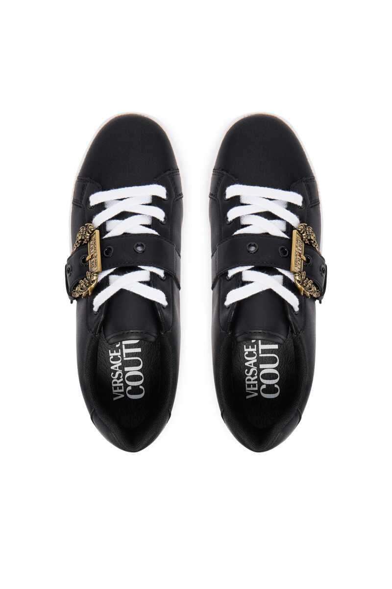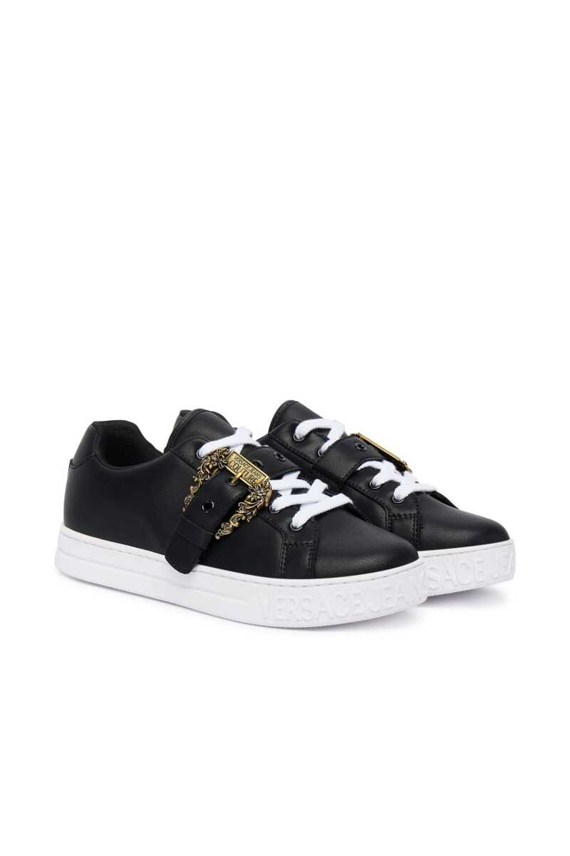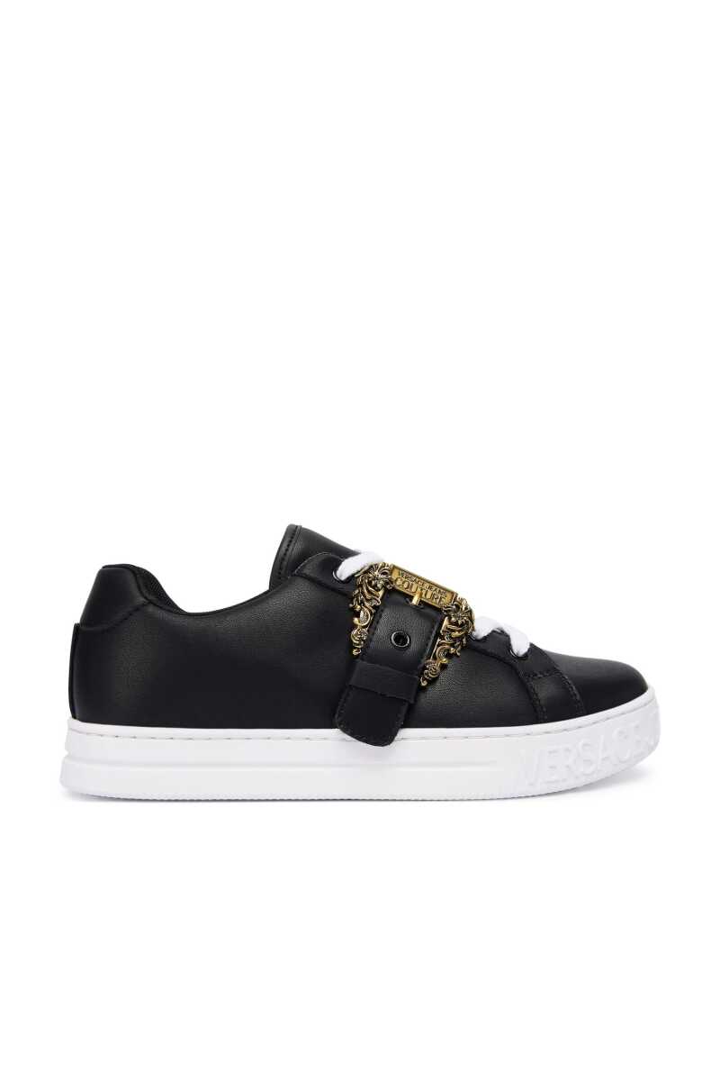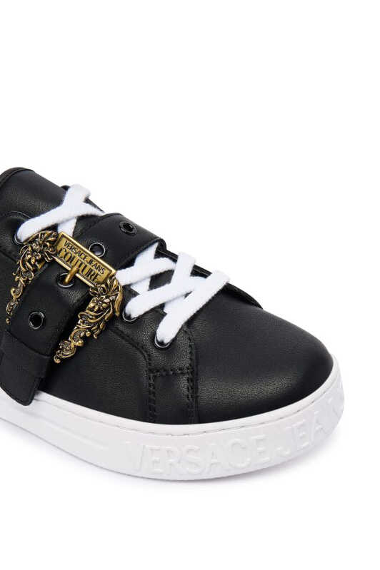 Klasik kort ayakkabısı stilini Barok dönemin ihtişamıyla buluşturan bu sneaker, adımlarınıza lüks ve iddialı bir dokunuş katacak. Pürüzsüz siyah deri yüzeyi, yan kısmını süsleyen gösterişli altın rengi Barok tarzı toka detayıyla zenginleştirilmiştir. Beyaz kauçuk tabanının yanlarındaki kabartma yazı logosu, tasarıma modern ve dinamik bir imza atarken, konforlu bir yürüyüş deneyimi sunar. Klasik bağcıklı yapısıyla ayağınıza tam uyum sağlayan bu sneaker, hem gündelik kombinlerinize sofistike bir hava katmak hem de stilinizi cesurca ifade etmek için mükemmel bir seçimdir.