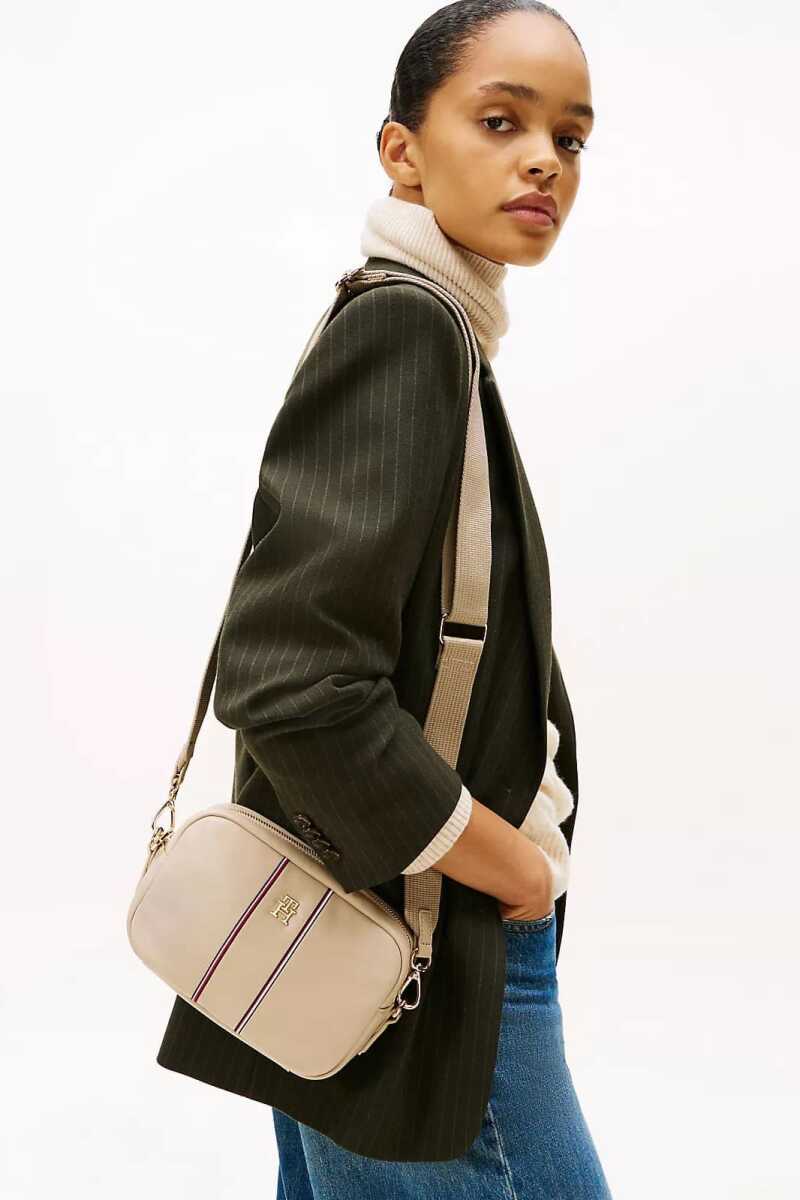 Günlük kullanım için ideal olan bu kompakt ve şık kamera çantası, stilinize zarif bir dokunuş katıyor. Pürüzsüz poliüretan malzemeden üretilen çanta, ön yüzündeki dikey renkli şeritler ve parlak metal monogram amblemi ile sofistike bir görünüm kazanır. Fermuarlı ana bölmesi telefon, cüzdan ve anahtar gibi temel eşyalarınız için güvenli bir alan sunar. Çıkarılabilir ve ayarlanabilir geniş dokuma askısı, çantayı hem omuzda hem de çapraz olarak konforlu bir şekilde taşımanıza olanak tanır.