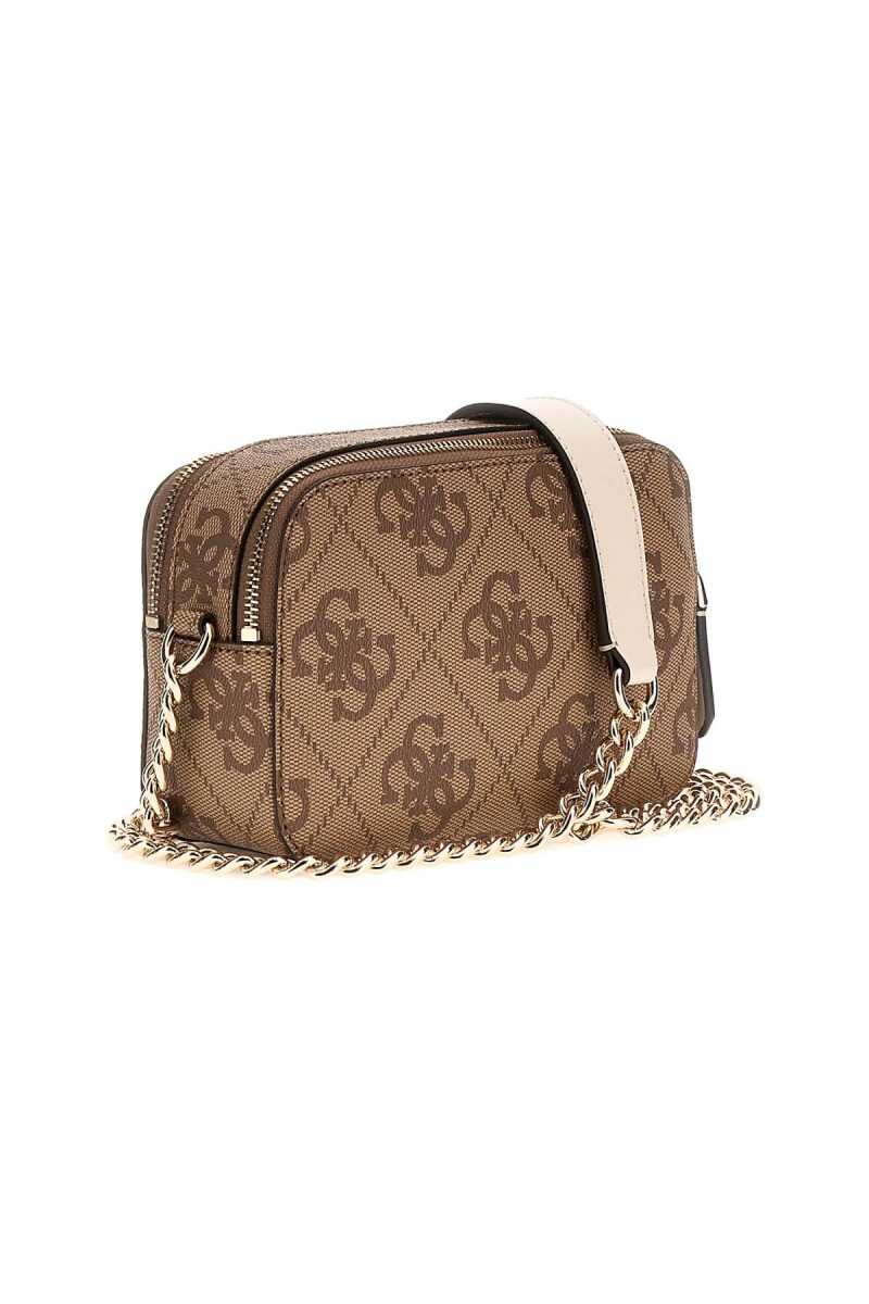 Dinamik ve modern bir tasarıma sahip olan bu çapraz askılı çanta, fonksiyonel "kamera çantası" formundadır. Monogram desenli gövdesi, ön yüzeydeki kontrast renkli dikey şeritler ve kuruluş yılını belirten yazı baskısı ile hareketli bir görünüm kazanır. İki ayrı fermuarlı ana bölmesi sayesinde eşyalarınızı düzenli bir şekilde organize etme imkanı sunarken, zincir detaylı askısı tasarıma şık bir dokunuş katar.