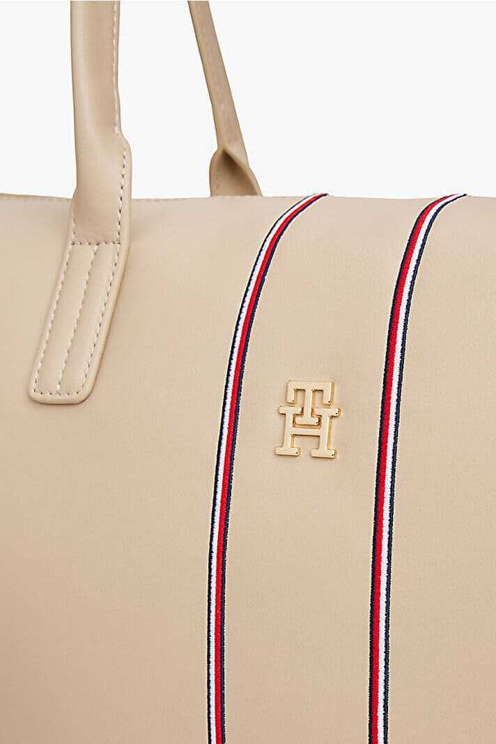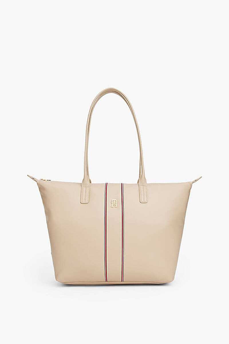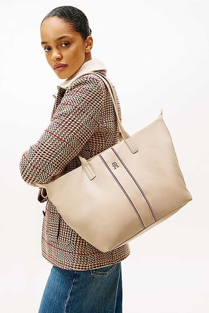 Günlük koşuşturmacalardan hafta sonu gezilerine kadar her ana uyum sağlayan bu zamansız ve geniş tote çanta, zarafeti ve fonksiyonelliği bir araya getiriyor. Pürüzsüz poliüretan malzemeden üretilen çanta, ön yüzündeki dikey renkli şeritler ve parlak metal monogram amblemi ile sofistike bir görünüm kazanır. Fermuarlı ana bölmesi, tabletiniz de dahil olmak üzere tüm temel eşyalarınız için bolca alan sunar. Uzun omuz askıları, gün boyu konforlu bir taşıma deneyimi sağlar.