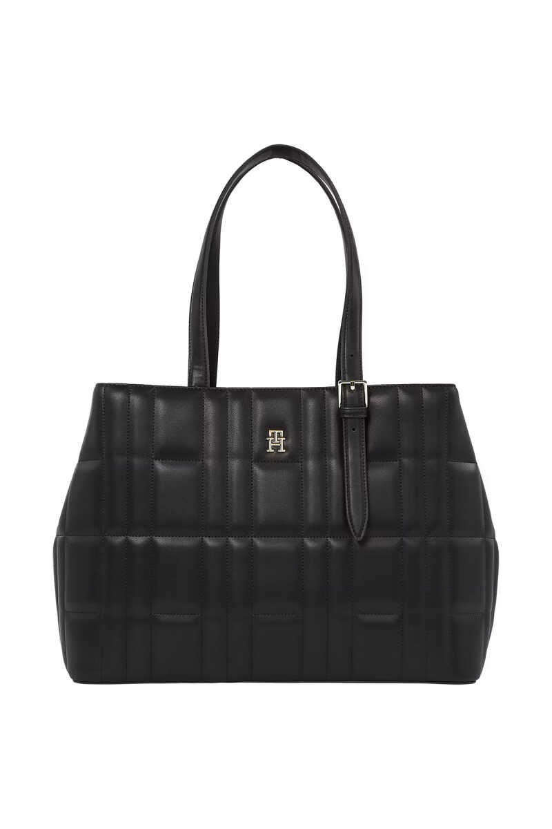 TH Feminine Tote çanta, modern çizgili dikişleri ve şık altın rengi marka logosu ile tarzınıza elegan bir dokunuş sağlar. Geniş iç hacmi ve kullanışlı askı boyuyla, günlük kullanımın yanı sıra ofis veya seyahat için de mükemmel bir seçimdir.