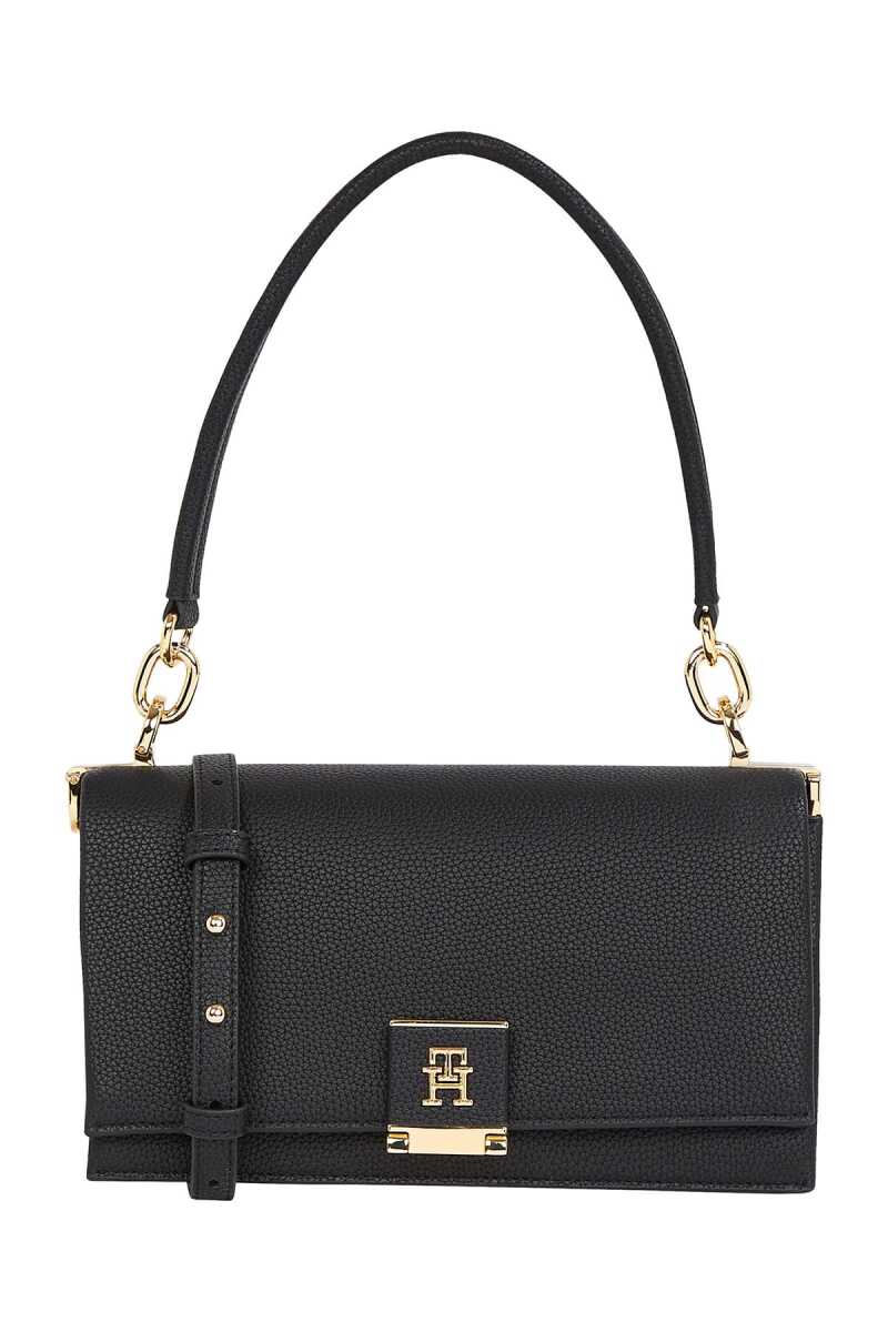 Kadın Th Kapaklı Askılı Omuz Çantası - Siyah