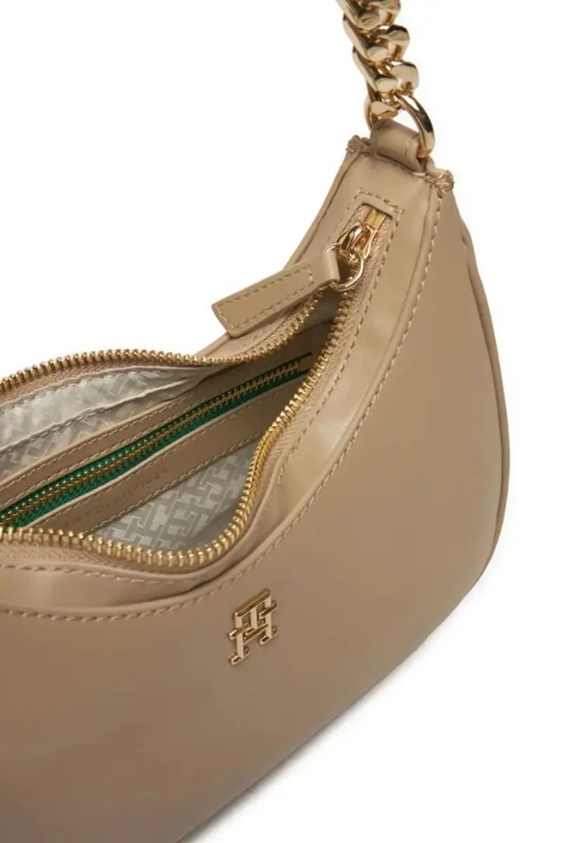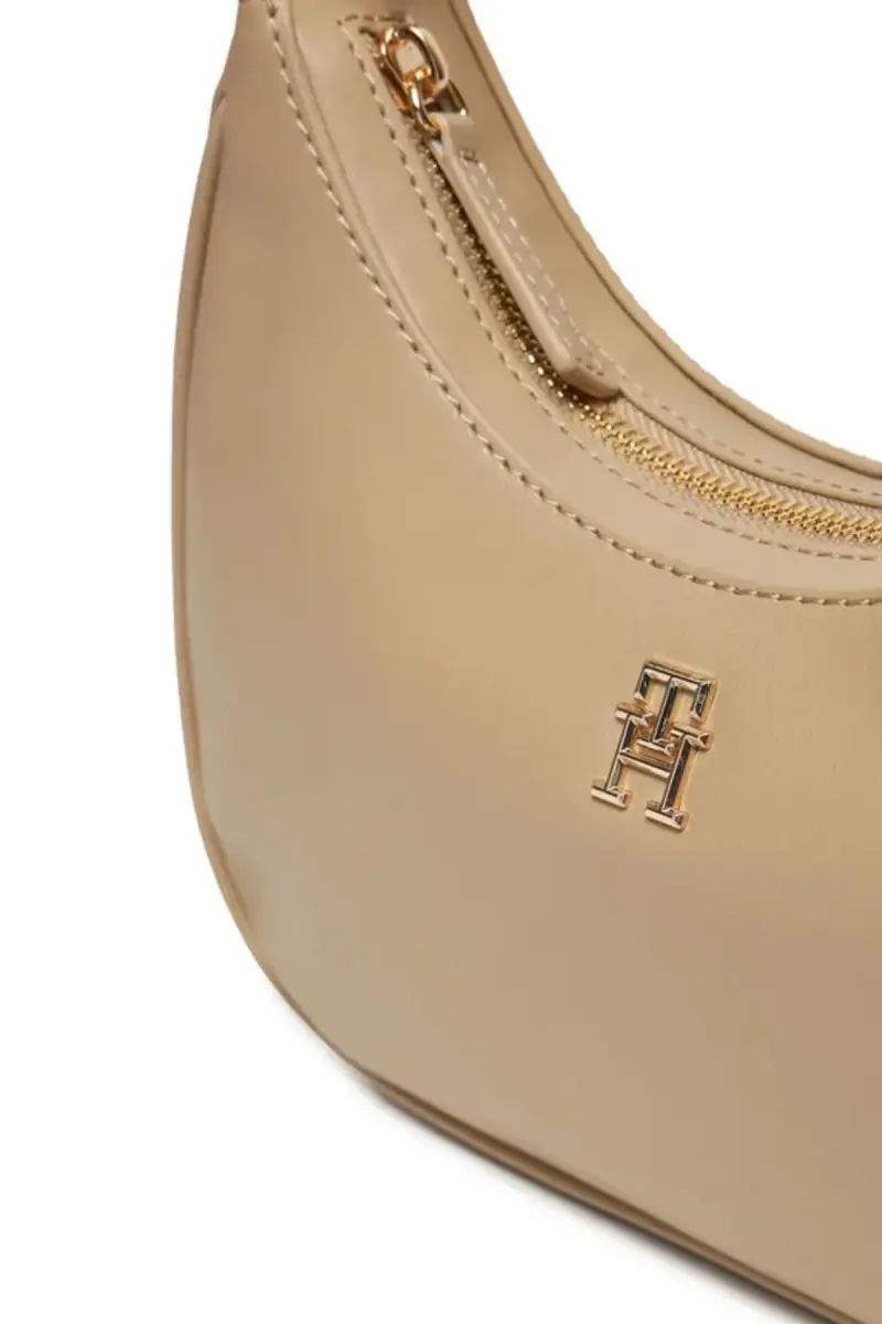 Kadın TH Marka Logolu Deri Ayarlanabilir Omuz Çantası - Bej