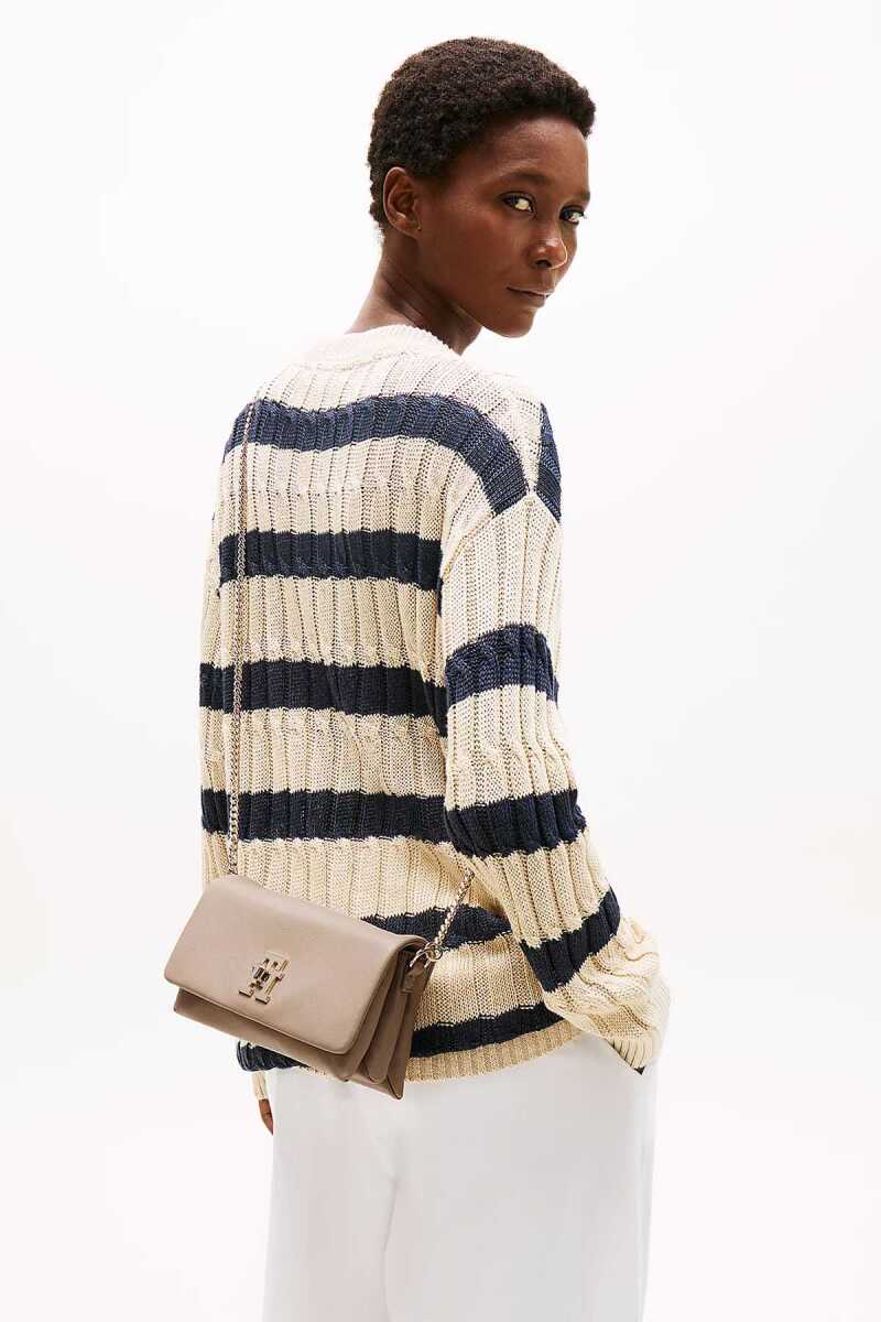 Zamansız tasarımını zarif detaylarla buluşturan TH Modern Mini Crossover çanta, günlük şıklığınıza zarif bir dokunuş katıyor. Zincir askı detayıyla öne çıkar.