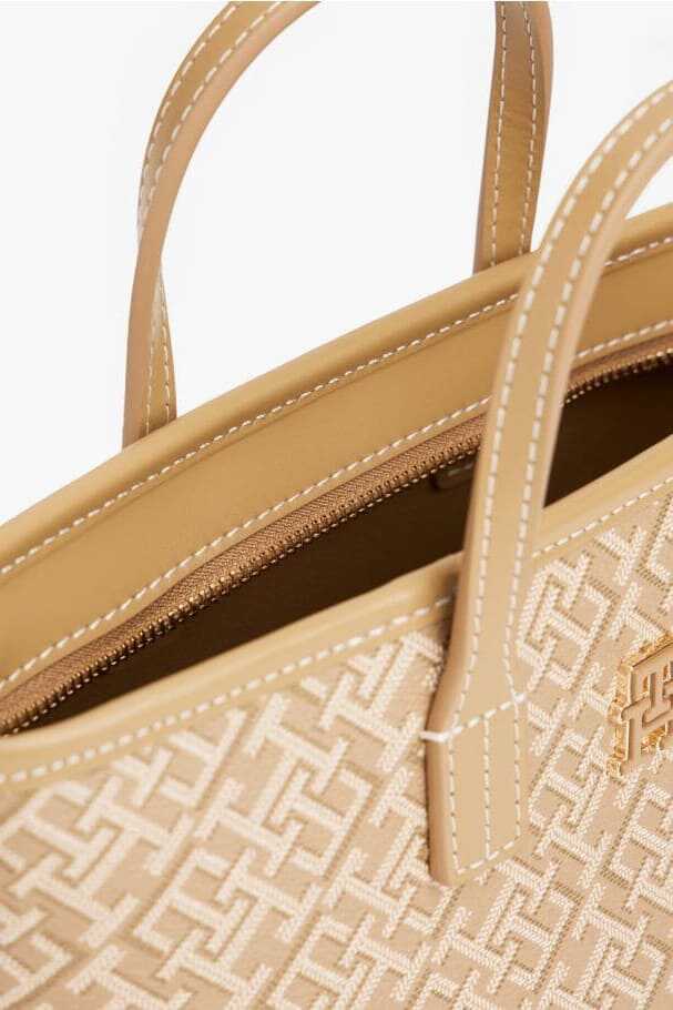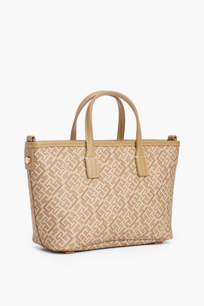 Her kombine uyum sağlayan sofistike ve göz alıcı bir stil için tasarlanan bu kompakt çanta, zarafetiyle öne çıkıyor. Tüm yüzeyini kaplayan dokulu monogram deseni, çantaya lüks bir karakter kazandırırken, fermuarlı ana bölmesi ve içindeki fermuarlı cebi temel eşyalarınız için güvenli ve düzenli bir alan sunar. İster çift taşıma sapıyla elde, ister çıkarılabilir çapraz askısıyla omuzda kullanarak stilinizi tamamlayabileceğiniz bu çok yönlü parça, ön yüzündeki zarif metal amblemiyle dikkat çekiyor.