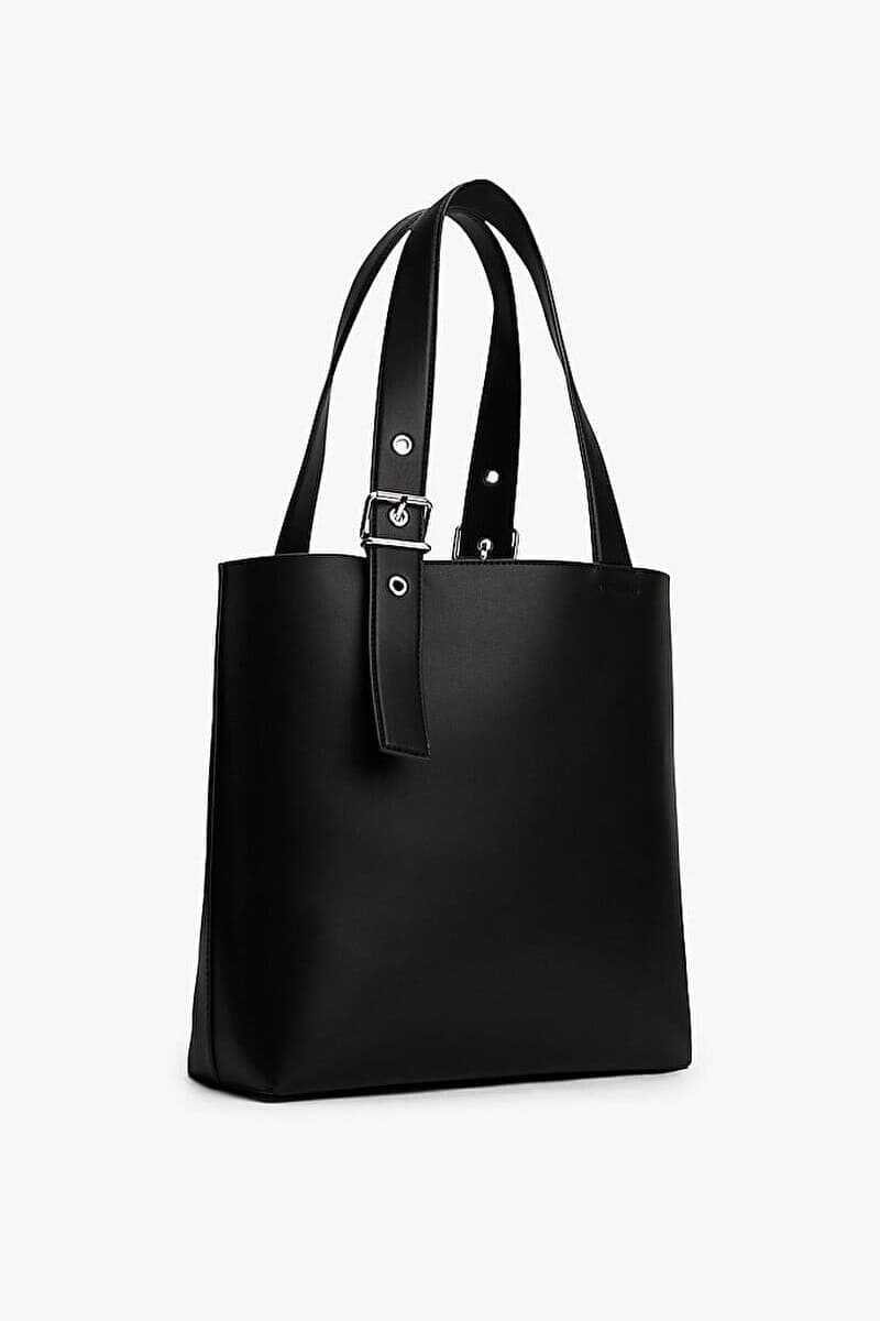 Minimalist tasarımı özgün bir detayla birleştiren bu modern tote çanta, günlük stilinize sofistike bir dokunuş katıyor. Pürüzsüz poliüretan malzemeden üretilen çanta, şık ve yapısal bir duruşa sahiptir. Klasik dikey silüeti, omuz askılarından birinde yer alan toka detayıyla hareket kazanarak tasarıma modern bir karakter katar. Geniş iç hacmi tüm günlük eşyalarınız için pratik bir kullanım sunarken, alt köşesindeki küçük dokuma amblem çantanın kimliğini tamamlar.