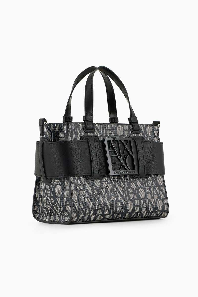Modern ve dikkat çekici bir tasarıma sahip olan bu tote çanta, stilinize iddialı bir dokunuş katmak için tasarlandı. Yüzeyinin tamamını kaplayan dinamik monogram deseni, çantanın etrafını saran geniş bir bant ve büyük toka detayıyla birleşerek sofistike bir görünüm sunar. Hem elde taşımak için kısa askıları hem de omuzda veya çapraz kullanım için ayarlanabilir uzun askısıyla çok yönlü bir kullanım imkanı sağlar.