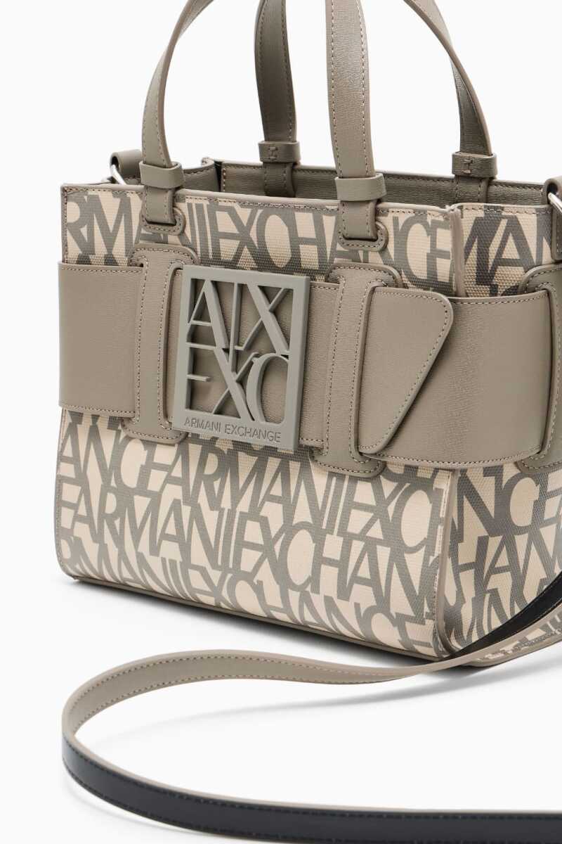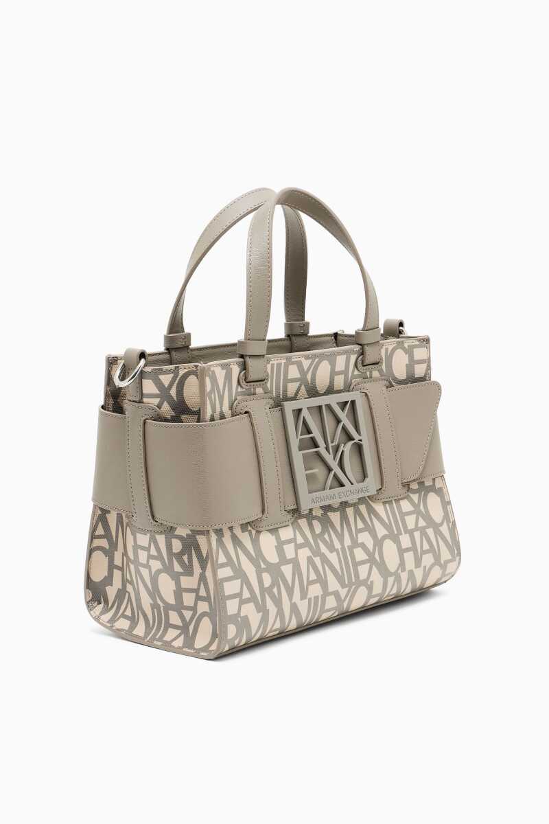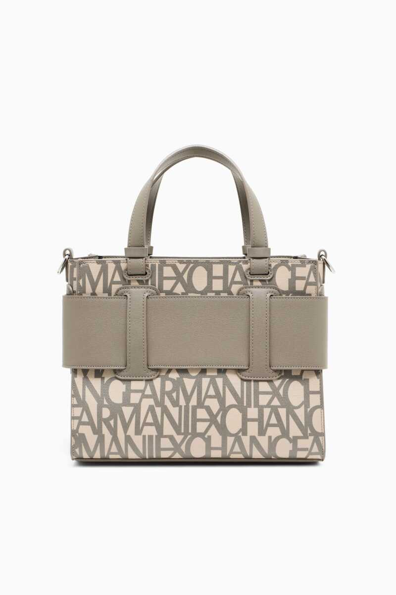 Modern ve dikkat çekici bir tasarıma sahip olan bu tote çanta, stilinize iddialı bir dokunuş katmak için tasarlandı. Yüzeyinin tamamını kaplayan dinamik monogram deseni, çantanın etrafını saran geniş bir bant ve büyük toka detayıyla birleşerek sofistike bir görünüm sunar. Hem elde taşımak için kısa askıları hem de omuzda veya çapraz kullanım için ayarlanabilir uzun askısıyla çok yönlü bir kullanım imkanı sağlar.