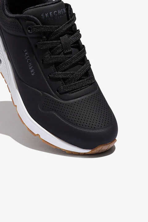 Yenilenen tasarımı ve geliştirilen konforu ile SKECHERS Street Uno - Stand on Air ayakkabı, günlük kıyafetlerinde şıklığı yakalamana yardımcı oluyor. Siyah, pembe ve beyaz renk seçeneklerine sahip olan ayakkabının ön ve yan paneldeki delikli detayları ile klasik SKECHERS tasarımını yansıtıyor. Günlük giyim tarzınıza uygun olacak şekilde tasarlanan ayakkabının, topuk kısmında SKECHERS Street Diamond S logosu bulunuyor. Bu sayede diğer ayakkabı modellerinden farklı bir tasarımı destekleyen model, en şık tasarımlarınızda bile yanınızda. Günlük ayakkabılardan beklenen en büyük özelliklerden bir tanesi ayak yapısının desteklenmesi ve gün içerisinde yoğun geçen dakikalarda bile ayağınızın rahat etmesini sağlamaktır. Kabartma doku detaylı orta tabanı ile ayağınızın gün içerisinde daha rahat etmesi sağlanırken, hava yastıklı topuk pedi ise darbe etkisini en aza indiriyor. SKECHERS Street Uno - Stand on Air ayakkabı aynı zamanda Air Cooled Memory Foam teknolojisi sayesinde gün içerisinde ayağınızın daha rahat nefes alması ve engebeli yollarda alınan darbelerden minimum düzeyde etkilenmesi sağlanıyor. Bağcıklı kullanımı ile ayakkabı, ayağınızı tam olarak sarıyor. 4 cm’lik topuk yüksekliği sayesinde, günlük giyim tarzınızda boyunuzun olduğundan daha uzun görünmesini sağlanıyor.