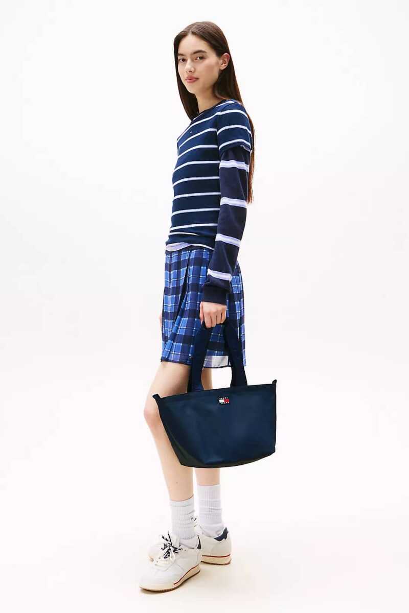Günlük kullanım için tasarlanmış bu şık ve pratik tote çanta, stil sahibi ve fonksiyonel bir aksesuardır. Hafif ve dayanıklı polyester malzemeden üretilen çanta, genişleyen modern silüetiyle temel eşyalarınız için ferah bir iç hacim sunar. Üzeri yazılı geniş dokuma omuz askıları tasarıma karakteristik bir dokunuş katarken, ön yüzdeki küçük dokuma amblem çantanın kimliğini tamamlar. Günlük koşturmacalarınız için ideal bir "al-çık" modelidir.