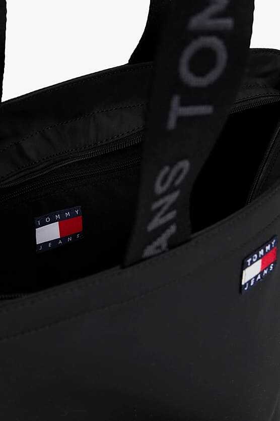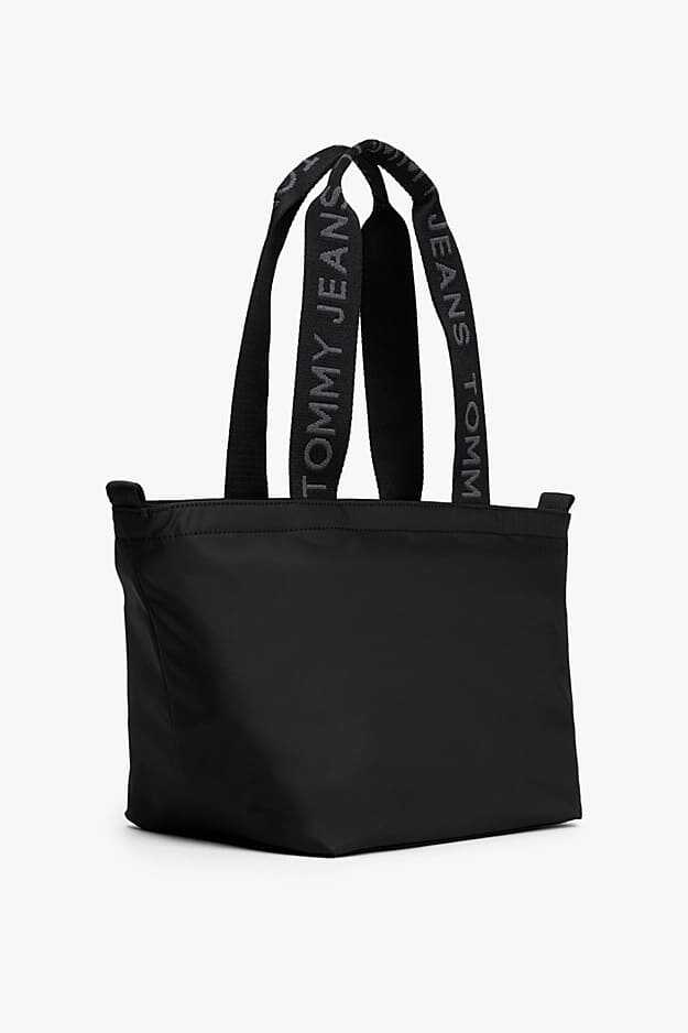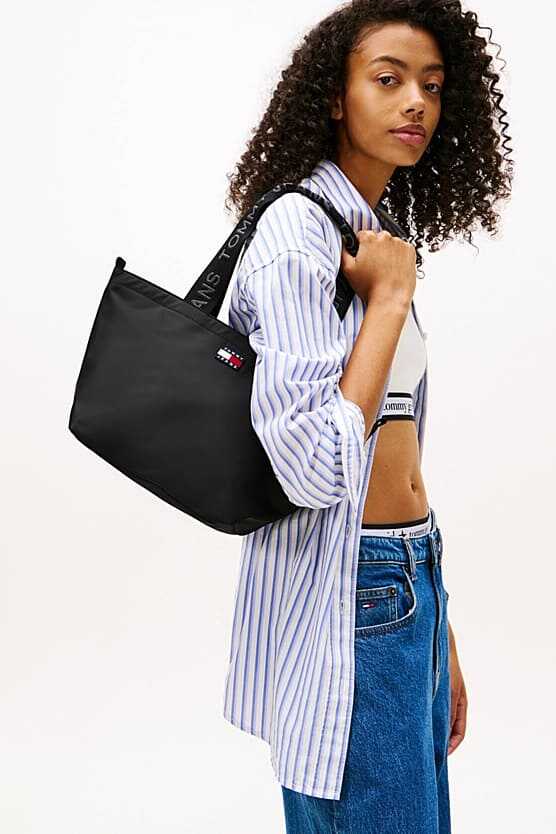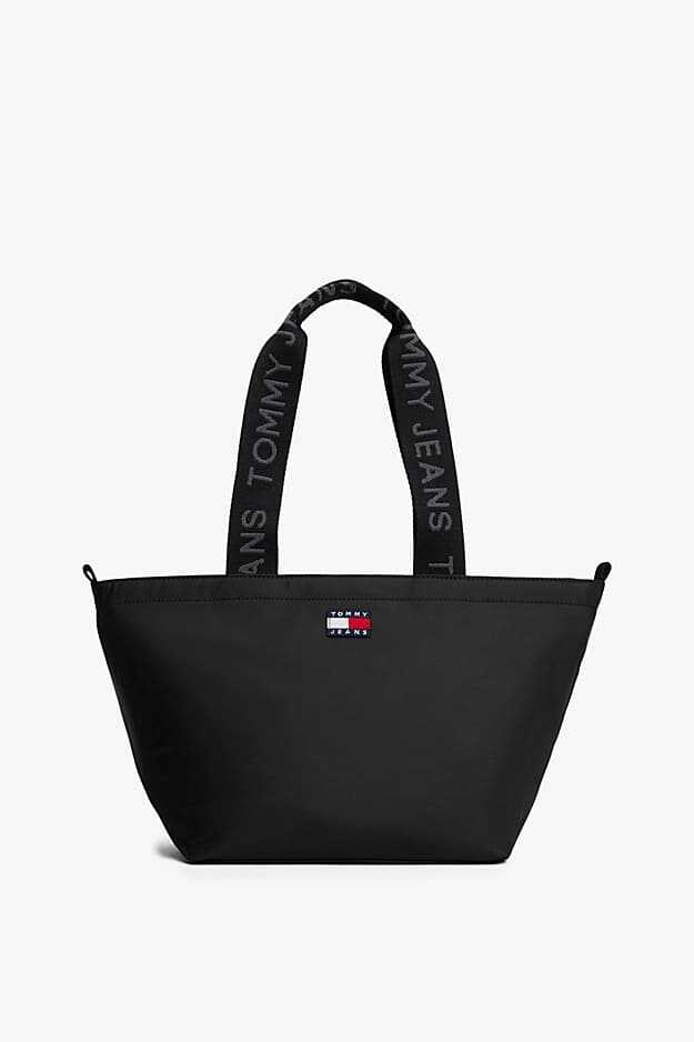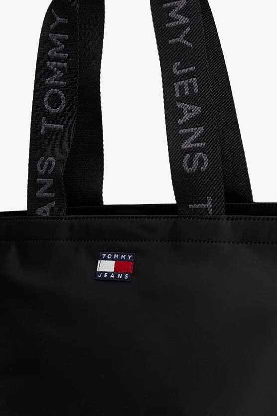 Günlük kullanım için tasarlanmış bu temel ve şık tote çanta, minimalist tasarımı imza detaylarla birleştiriyor. Hafif ve dayanıklı polyester malzemeden üretilen çanta, klasik siyah rengiyle her kombine zahmetsizce uyum sağlar. Genişleyen modern silüeti temel eşyalarınız için ferah bir iç hacim sunar. Üzeri yazılı geniş dokuma omuz askıları tasarıma karakteristik bir dokunuş katarken, ön yüzdeki küçük dokuma amblem çantanın kimliğini tamamlar.