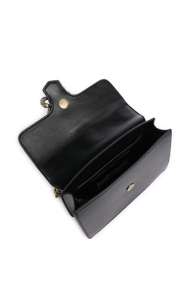 Just Cavalli'nin bu göz alıcı çapraz askılı çantası, %100 poliüretan malzemeden üretilmiştir. Ön kapakta yer alan ikonik, antik altın rengi yılan motifli metal toka, çantaya markanın cesur ve özgün kimliğini katıyor. Ayarlanabilir parlak altın rengi zincir askısı, hem omuzda hem de çapraz kullanım imkanı sunarak çok yönlülük sağlar. Mıknatıslı kapaklı ana bölmesi, temel eşyalarınız için güvenli bir alan sunarken, bu çanta gündüzden geceye şıklığınızı tamamlayacak iddialı bir aksesuardır.