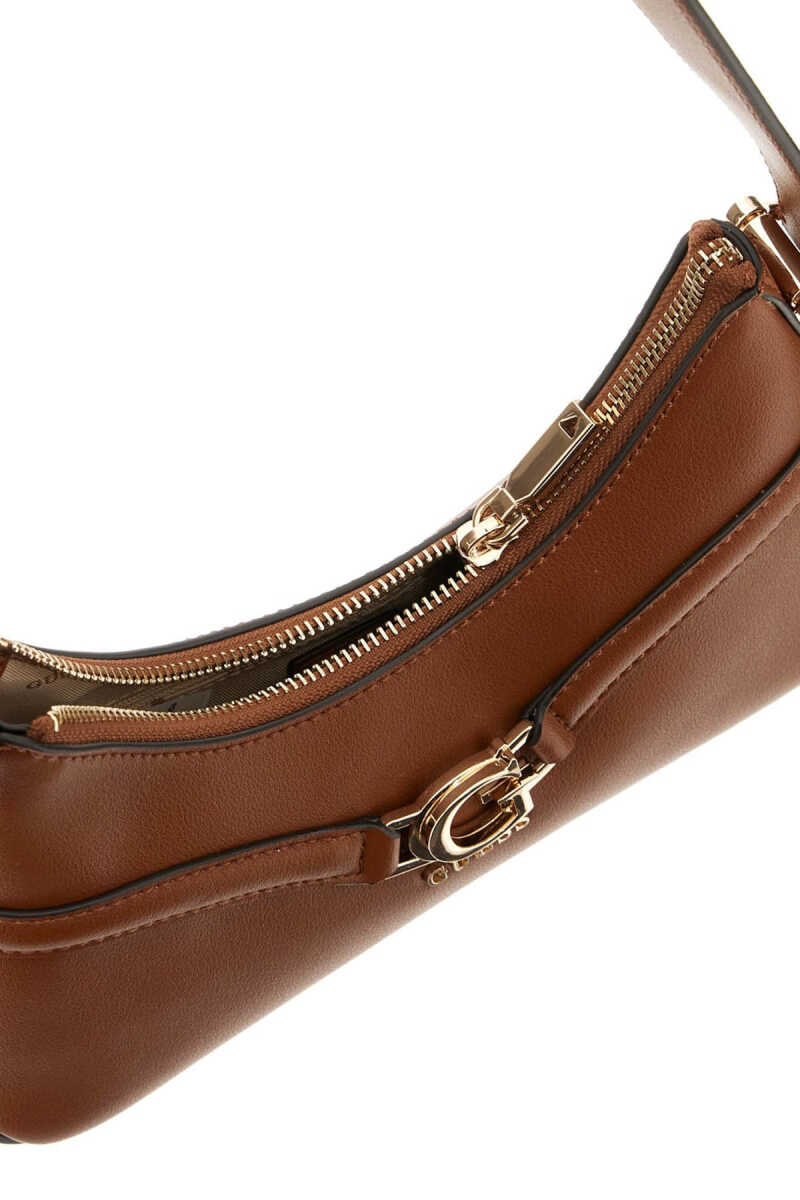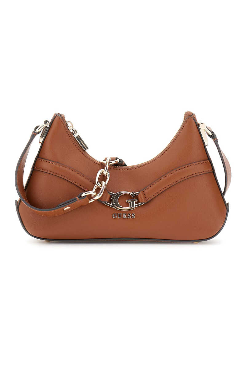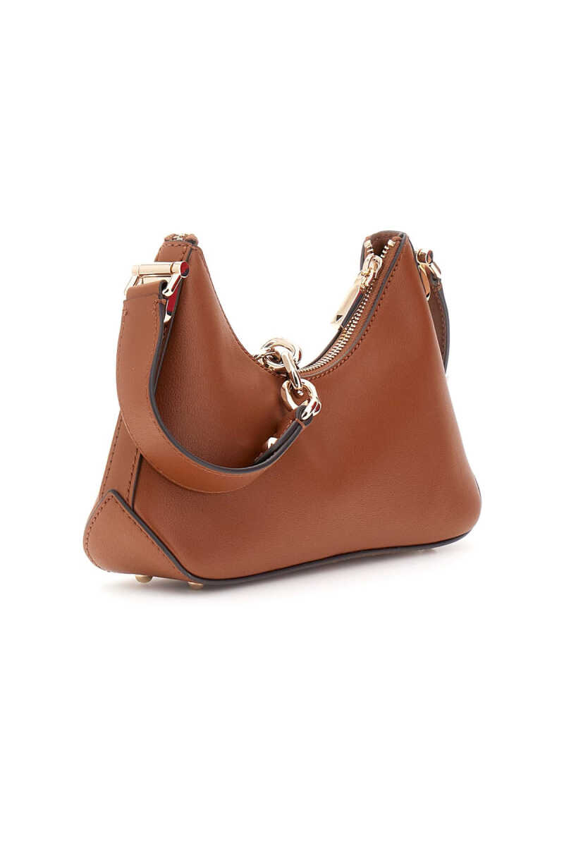 Modern ve popüler "hobo" formuna sahip bu omuz çantası, şehirli ve sofistike bir stil sunar. Pürüzsüz taba rengi yüzeyi, çantaya karakteristik bir kimlik kazandırır. Ön yüzeydeki kemer detayı, parlak metal harf logosu ve ona bağlı zincir aksesuarı, tasarıma dinamik bir dokunuş katar. Fermuarlı kapanışı, eşyalarınız için güvenli bir saklama alanı sağlar.