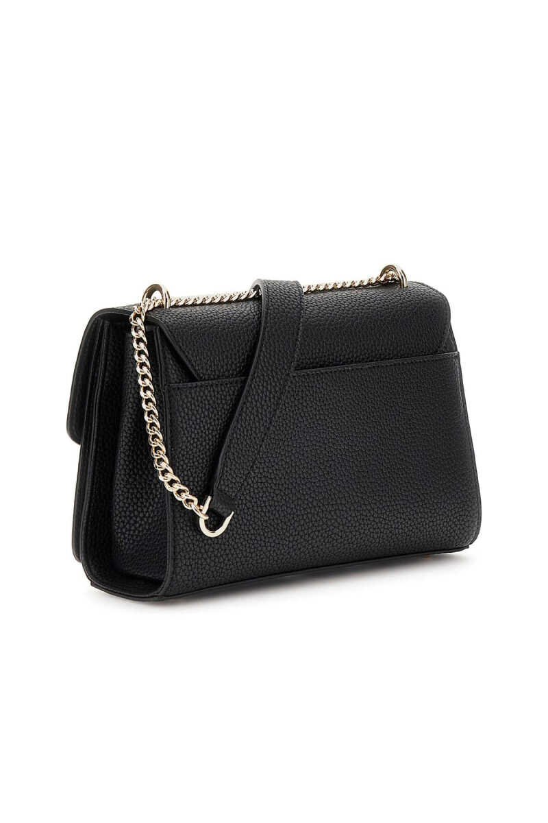Klasik ve zarif bir tasarıma sahip olan bu omuz çantası, her gardırobun temel parçalarından biridir. Dokulu siyah poliüretan yüzeyi, çantaya sofistike bir hava katarken, ön kapak üzerindeki minimalist metal yazı detayı şık bir dokunuş sunar. Zincir detaylı omuz askısı, tasarıma modern ve ışıltılı bir karakter kazandırır.