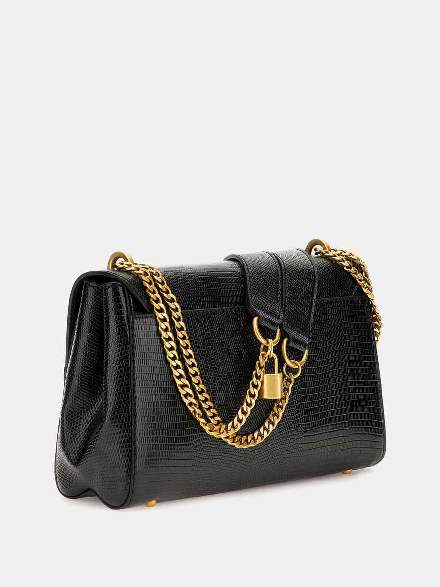 Katey Timsah Desenli Kadın Çapraz Çanta-Siyah