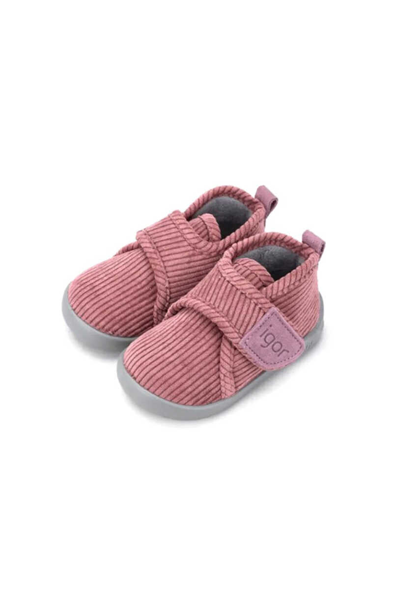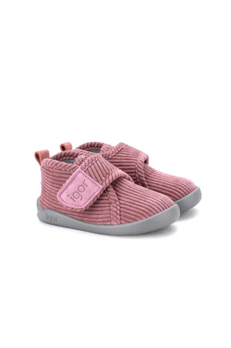 Ev konforunu şıklıkla birleştiren bu ev botu, çocukların ayaklarını sıcak tutmak için ideal bir seçimdir. Dokulu fitilli kadife yüzeyi tasarıma sevimli bir dokunuş katarken, cırtlı kapaması ve arkasındaki çekme halkası sayesinde kolayca giyilip çıkarılabilir. Ayağı nazikçe saran bilekli yapısı ve adımları yastıklayan EVA iç tabanı ile gün boyu rahatlık sunar. Esnek PVC tabanı, ev içinde güvenli ve özgür adımlar atılmasına olanak tanır.