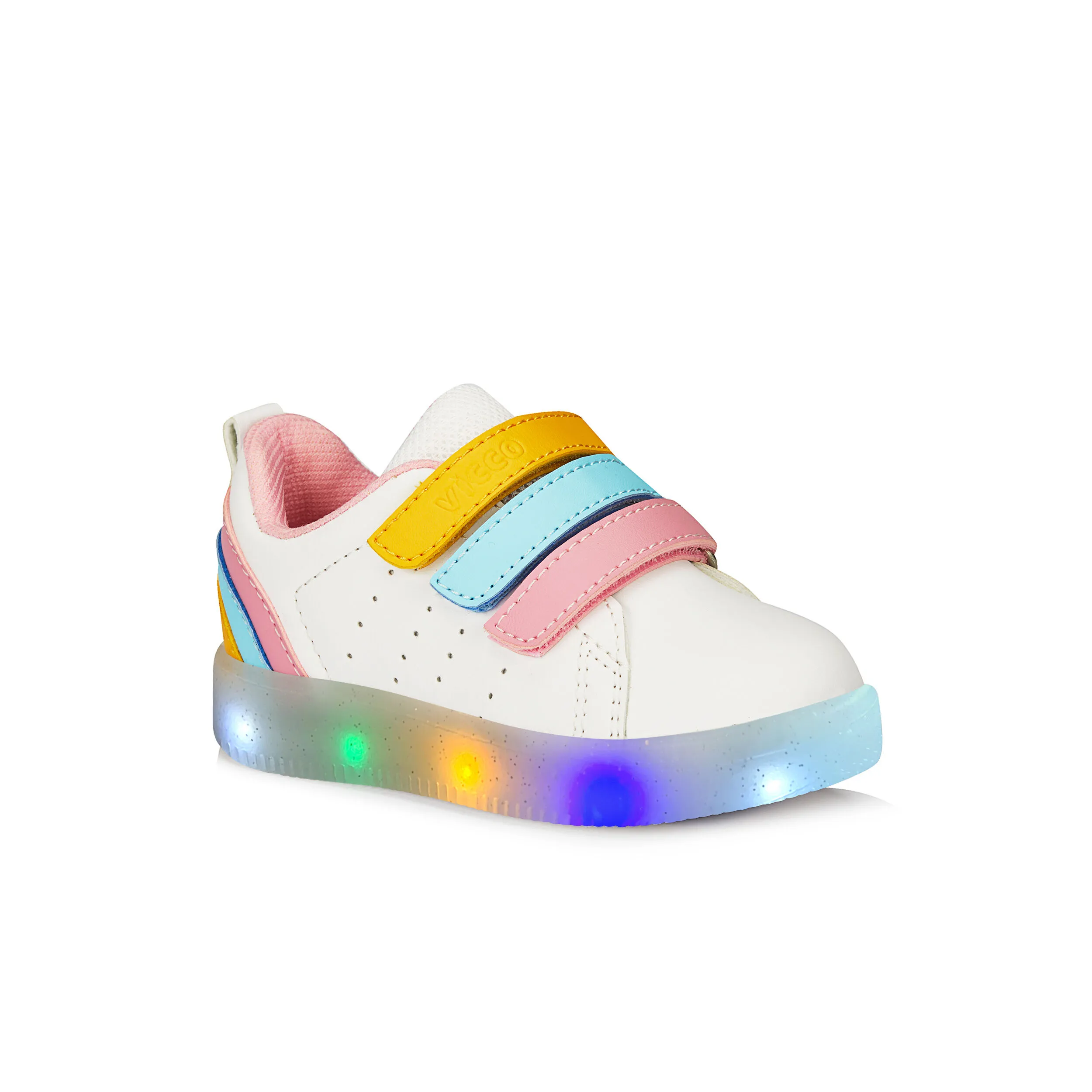 Kız Çocuk Sun Bebe Işıklı Ayakkabı-Beyaz Pembe