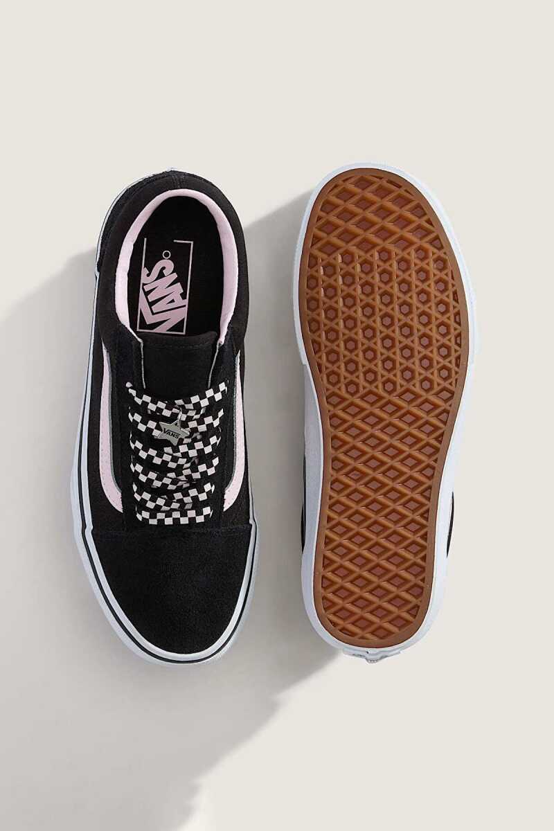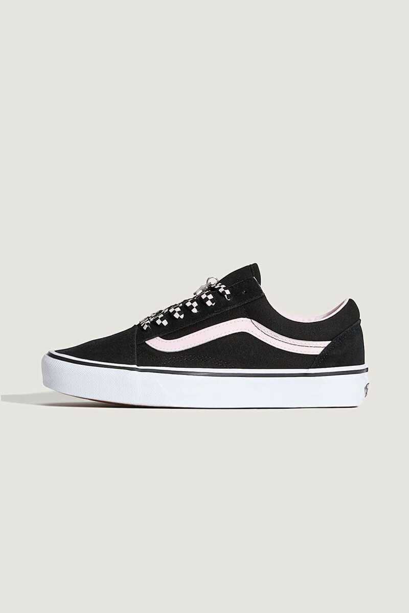 Markanın ikonik kaykay mirasını taşıyan Old Skool silüeti, bu kez eğlenceli ve kontrast detaylarla dikkat çekiyor. Dayanıklı siyah süet ve kanvas panellerden oluşan klasik üst yüzey, pembe renkli ikonik Sidestripe şeridiyle hareket kazanır. Tasarımın en özgün detayı olan siyah-beyaz damalı geniş bağcıklar ve üzerindeki özel metal süs, ayakkabıya benzersiz bir karakter katar. Her adımda üstün zemin tutuşu sağlayan imza Waffle kauçuk tabanıyla bu sneaker, klasik tasarıma modern ve enerjik bir yorum getirmek isteyenler için mükemmel bir seçimdir.