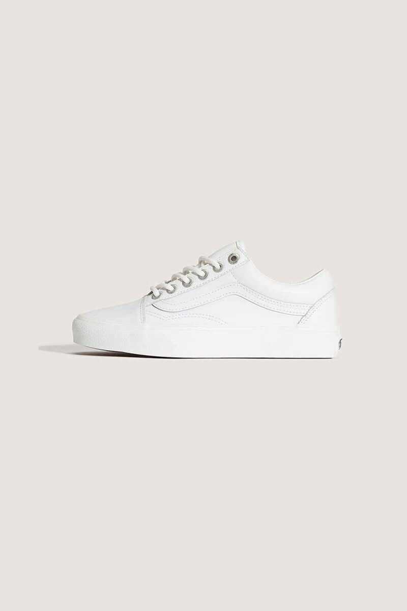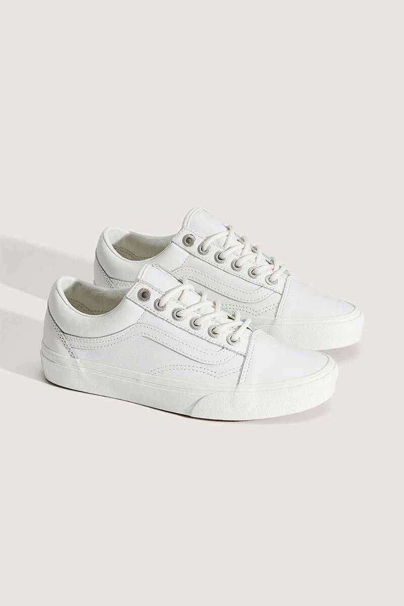 Vans'in ikonikleşmiş Old Skool modeli, bu versiyonunda şık deri sayası ile zamansız bir görünüm sunuyor. Tamamen beyaz (monokrom) tasarımı, markanın imzası olan dikişli yan şeridi (Sidestripe) ile klasik kimliğini korur. Dayanıklı deri yapısı uzun ömürlü bir kullanım sağlarken, dolgulu bilek kısmı ve waffle tabanı gün boyu konfor ve üstün zemin tutuşu sağlar. Hem kaykay performansları hem de günlük sokak stili için mükemmel bir tercihtir.