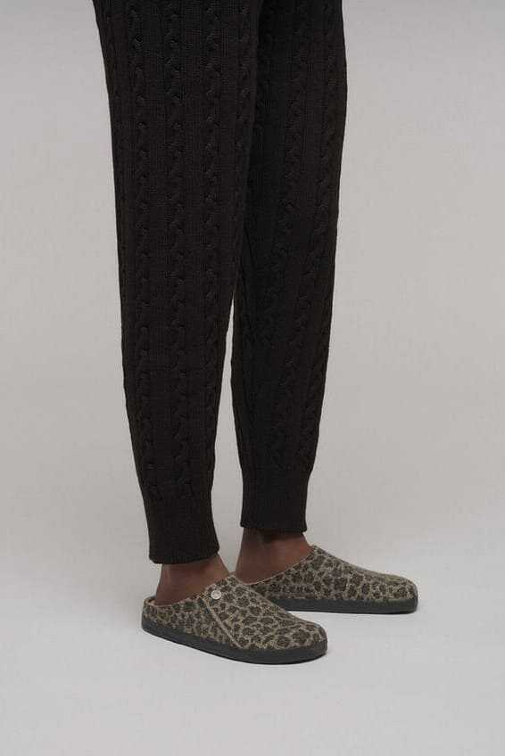 Ev stilinize iddialı bir dokunuş katacak bu leopar desenli terlik, konforu ve trendleri bir araya getiriyor. Yumuşak üst yüzeyi ayağınıza nazikçe uyum sağlarken, içindeki sıcak ve yoğun peluş astarı soğuk günlerde bile olağanüstü bir sıcaklık ve yumuşaklık hissi verir. Kaymaz tabanı ev içinde güvenli adımlar atmanızı sağlarken, yan kısımdaki metalik logo detayı tasarıma minimal bir imza katar. Kolayca giyilip çıkarılabilen yapısıyla evdeki konforunuzun en şık tamamlayıcısı olacak.
